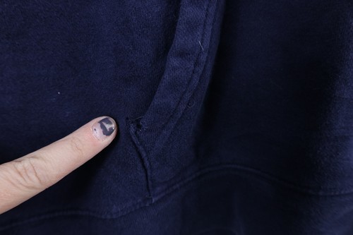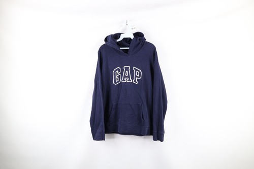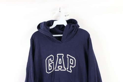 Vintage Gap Womens XL Faded Spell Out Block Letter Hoodie Sweatshirt Navy Blue