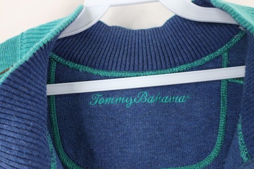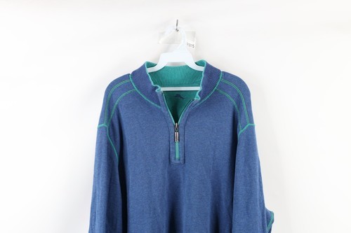 Vtg Tommy Bahama Mens 2XL Faded Reversible Spell Out Half Zip Pullover Sweater