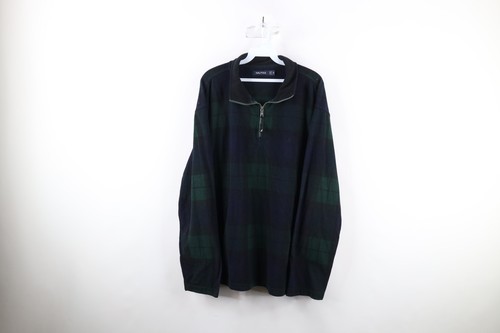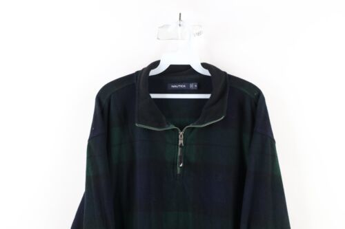 Vintage 90s Nautica Mens Size XL Faded Half Zip Fleece Pullover Sweater Plaid