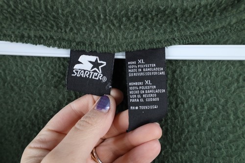 Vintage Starter Mens XL Faded Spell Out Full Zip Fleece Hoodie Sweatshirt Green