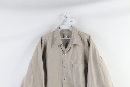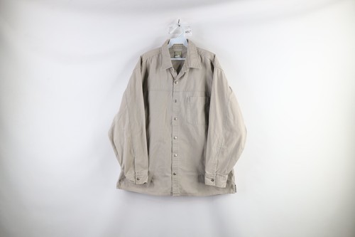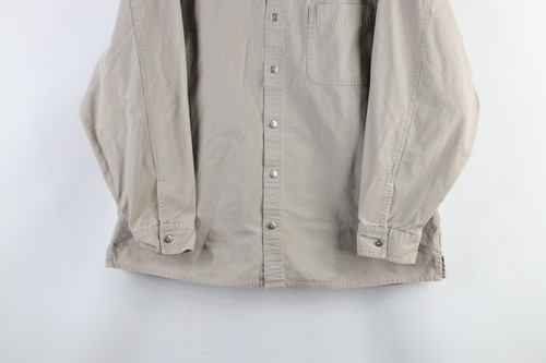 Vintage 90s Marlboro Mens XL Distressed Heavyweight Canvas Button Shirt Beige