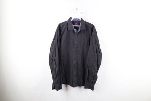 Untuckit Mens Large Slim Fit Faded Flower Flip Cuff Collared Button Shirt Black