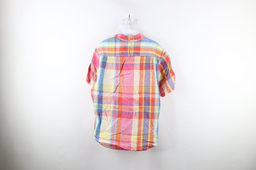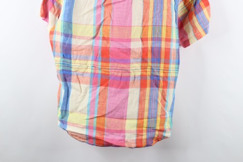 Tommy Bahama Mens Medium India Madras Plaid Rainbow Linen Collared Button Shirt