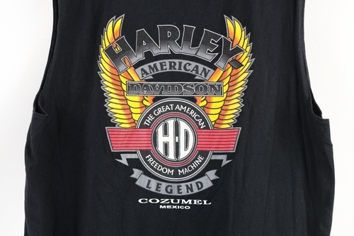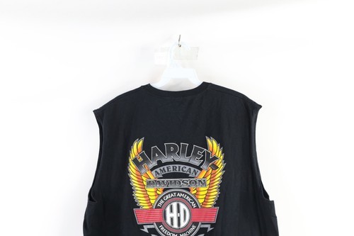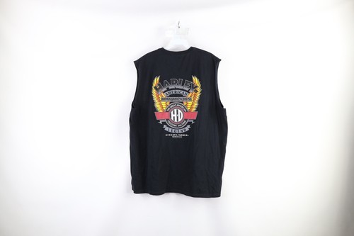 Vintage Harley Davidson Mens 2XL Faded Spell Out Sleeveless T-Shirt Black Cotton