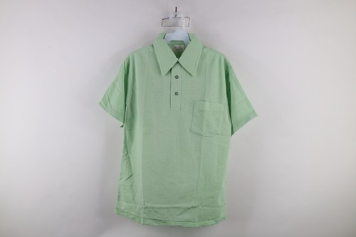 Deadstock Vtg 60s 70s Streetwear Mens Medium Blank Knit Collared Polo Lime USA
