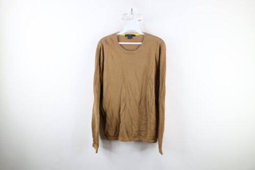 Vintage 90s J Crew Womens Large Blank Lightweight Cotton Knit Sweater Brown