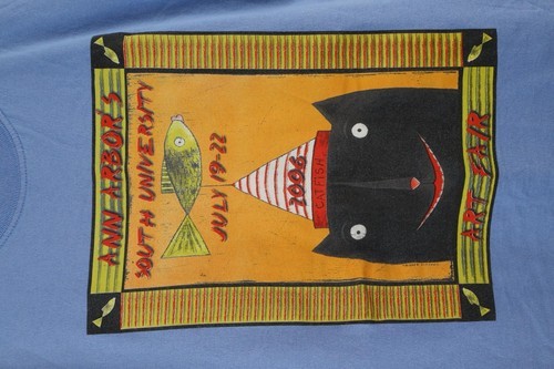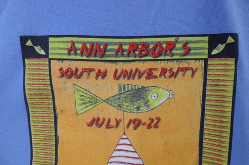 Vintage Y2K 2006 Mens Medium Faded Spell Out Ann Arbor Art Fair T-Shirt Blue