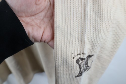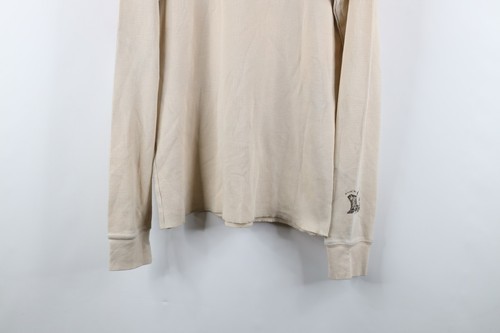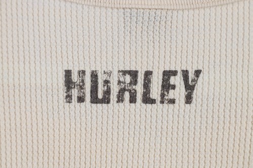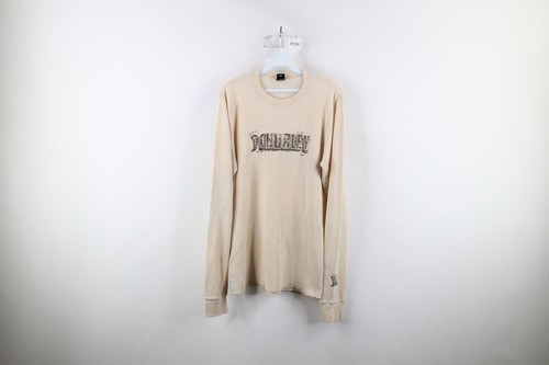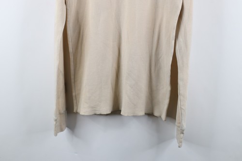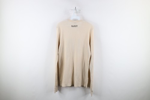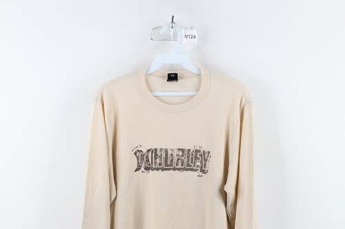 Vtg Hurley Mens Large Spell Out Thermal Waffle Knit Long Sleeve T-Shirt Beige