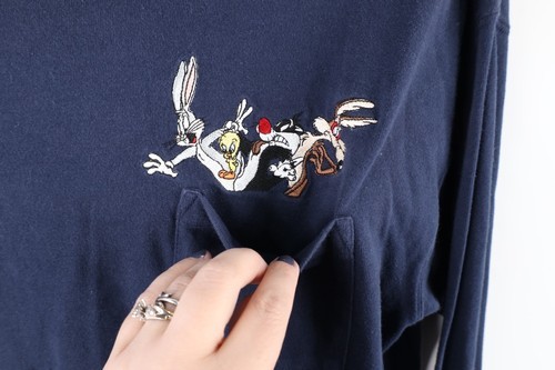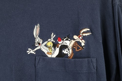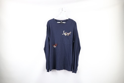 Vtg 90s Looney Tunes Mens Medium Faded Taz Bugs Bunny Pocket Long Sleeve T-Shirt