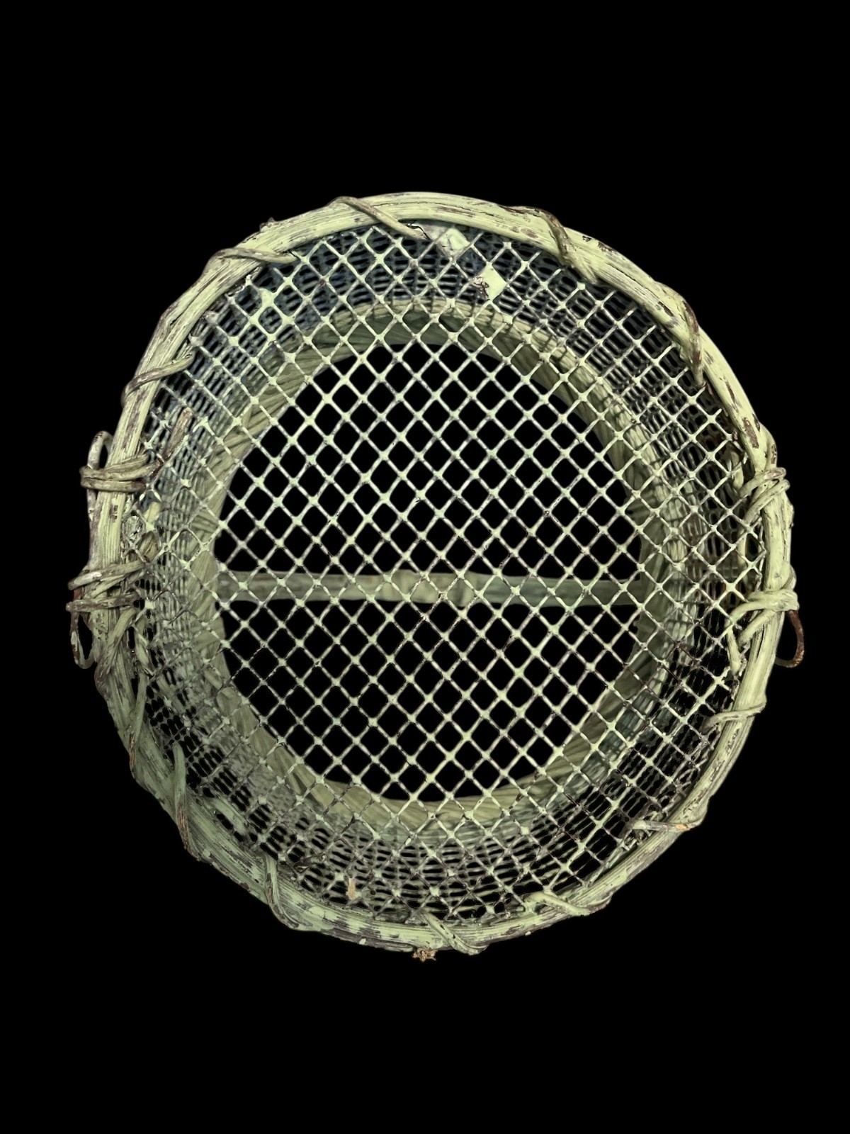 Vintage Wire and Wicker Basket with Handle – Rustic Farmhouse Decor – Round Mesh