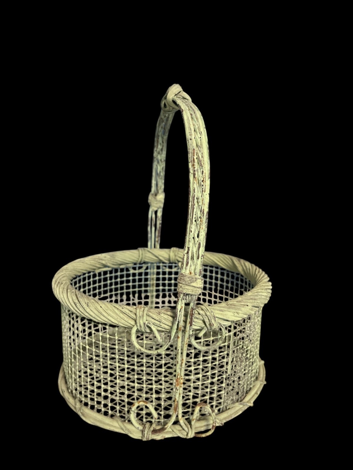 Vintage Wire and Wicker Basket with Handle ? Rustic Farmhouse Decor ? Round Mesh Utility Basket