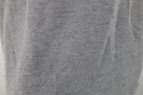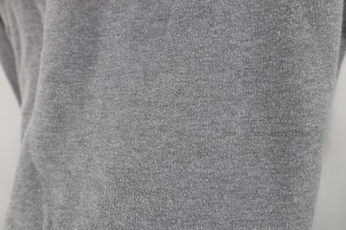 Sequins distressed, graphics faded. Dark spots throughout. Collar, cuffs discolored. Color faded. Pilling