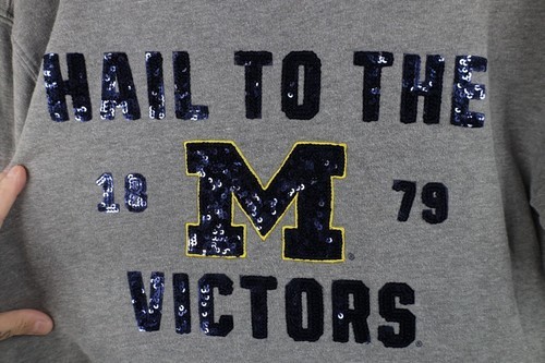 Pink Victorias Secret Womens Small University of Michigan Sequined Sweatshirt