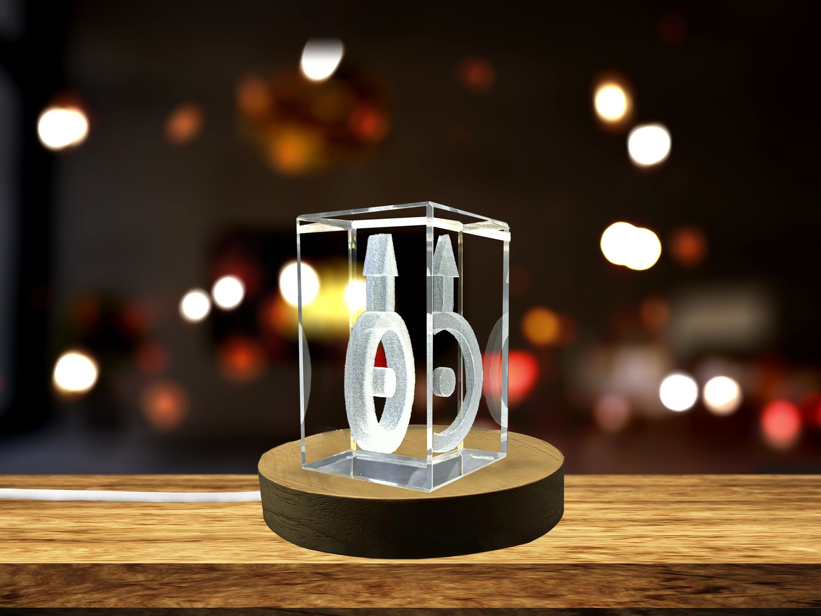 LED Base included | Uranus Symbol 3D Engraved Crystal Gift - Celestial Decor