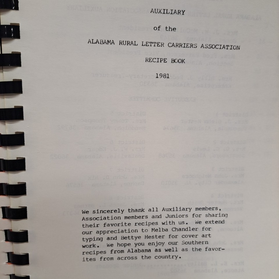 Auxiliary Of Alabama Letter Carriers Association Alabama Cookbook 1981
