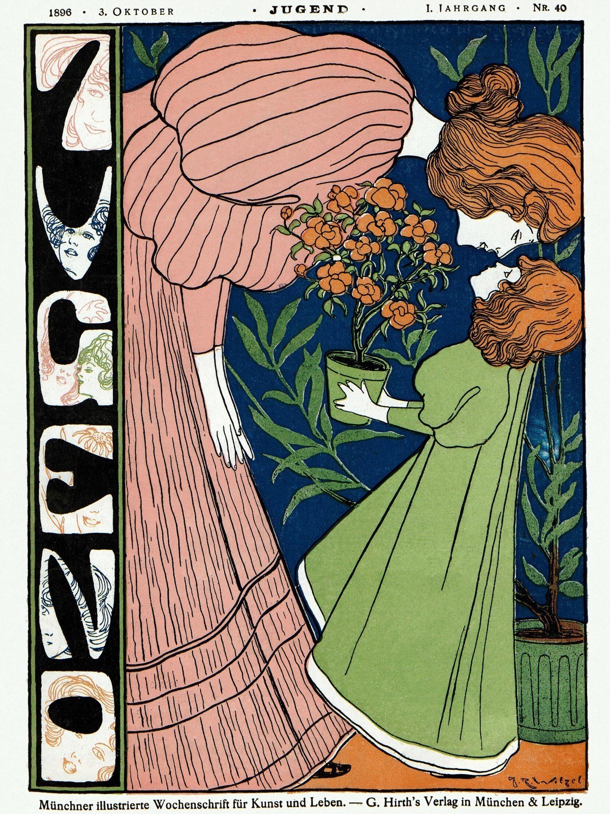 13680.Decoration Poster.Vintage Wall interior design. Art Nouveau mother & girl