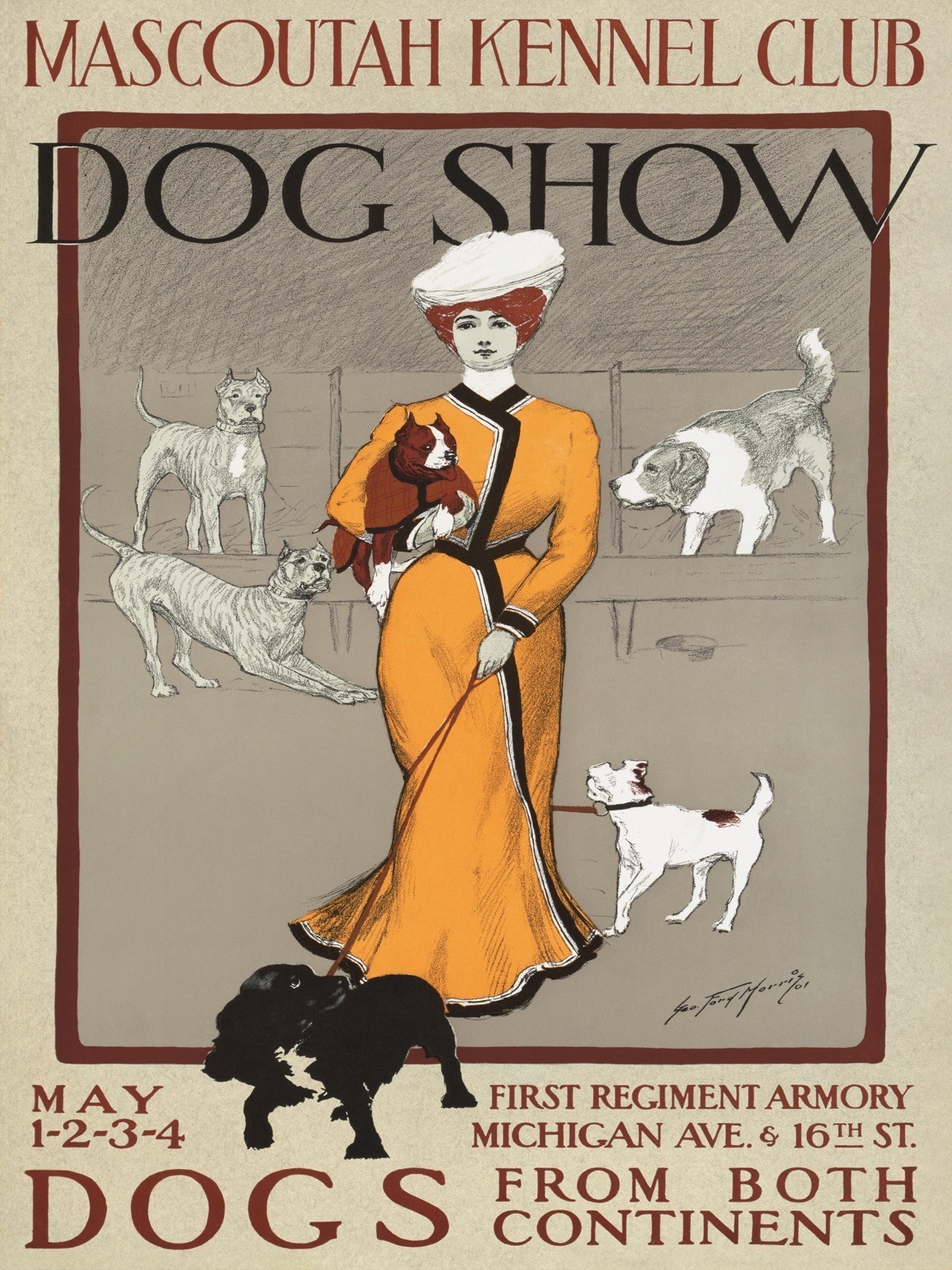 13702.Decoration Poster.Vintage Wall interior design. Art Nouveau Dog show Club