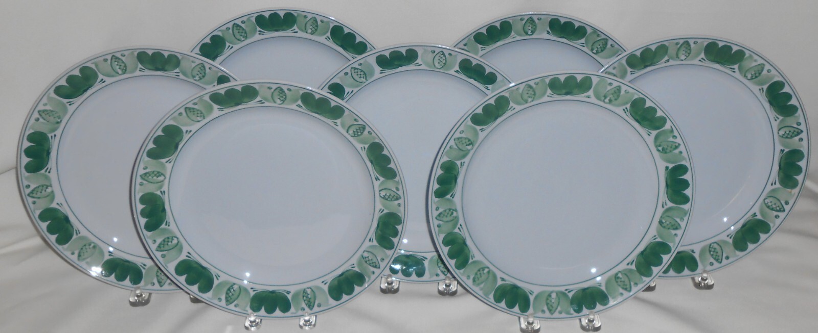 Set (7) Arabia GREEN LAUREL PATTERN Luncheon Plates MADE IN FINLAND