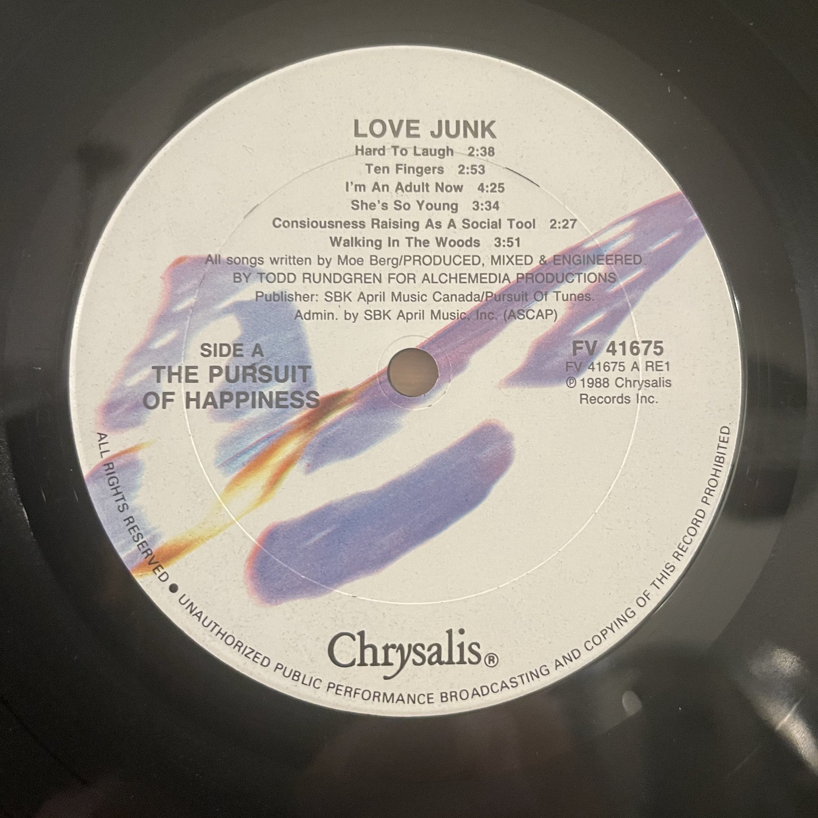 The Pursuit Of Happiness Love Junk Vinyl LP Chrysalis FV 41675 I'm An Adult Now