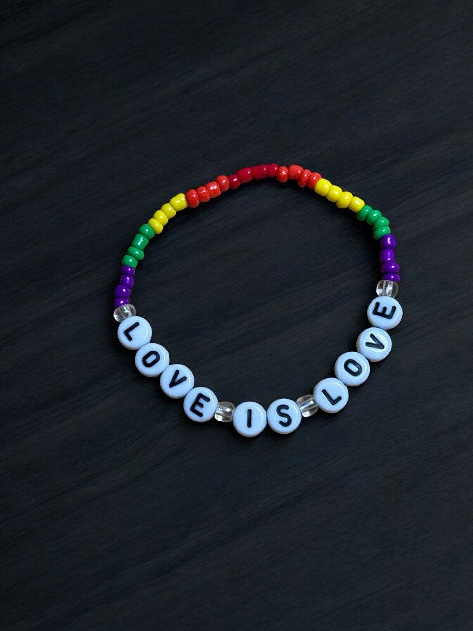 The Love is Love Bracelet is a vibrant and meaningful accessory that celebrates equality and love in all its forms. Handcrafted with colorful beads inspired by the Pride flag, this bracelet is a symbol of support, unity, and inclusivity. Its adjustable design ensures a comfortable fit, making it perfect for everyday wear or as a thoughtful gift. Show your pride and spread a message of love and acceptance with the Love is Love Bracelet, a stylish way to embrace and celebrate diversity.