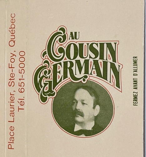 Matchbook Cover AU Cousin Germain Place Laurier, Ste-Foy, Québec Unstruck gmg