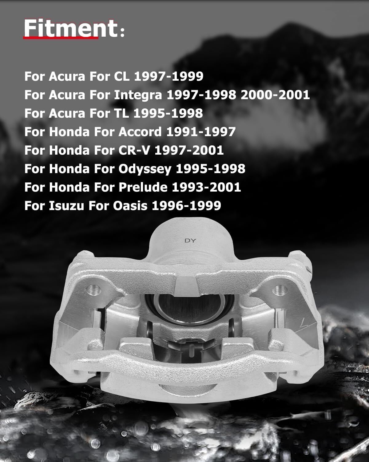 FITS: For Acura For CL 1997 1998 1999,For Acura For Integra 1997 1998 2000 2001,For Acura For TL 1995 1996 1997 1998,For Honda For Accord 1991 1992 1993 1994 1995 1996 1997,For Honda For CR-V 1997 1998 1999 2000 2001,For Honda For Odyssey 1995 1996 1997 1998,For Honda For Prelude 1993 1994 1995 1996 1997 1998 1999 2000 2001,For Isuzu For Oasis 1996 1997 1998 1999 BRAKE CALIPER SPECIFICATION: Bleeder port size:M10*1.25;Inlet port size:M10*1.0;Piston diameter:2.248inch; Piston Count: 1;Piston Material: Iron PACKAGE INCLUDES: 2*Brake Calipers with Bracket(19B1461 19-B1461 19B1460 19-B1460 Front Driver Passenger Side);Included Copper Washers,Bracket Mounting Bolts. ADVANTAGE: Adopt advanced technology, with the characteristics of high strength to ensure the stability of caliper brake power output. Built to Strict Quality Control Standards,All Brake Calipers meet or exceed OEM specifications. ATTENTION: Please check the description of the details page carefully, or enter your vehicle information in the Top Left Corner of listing to make sure the product fits your car.