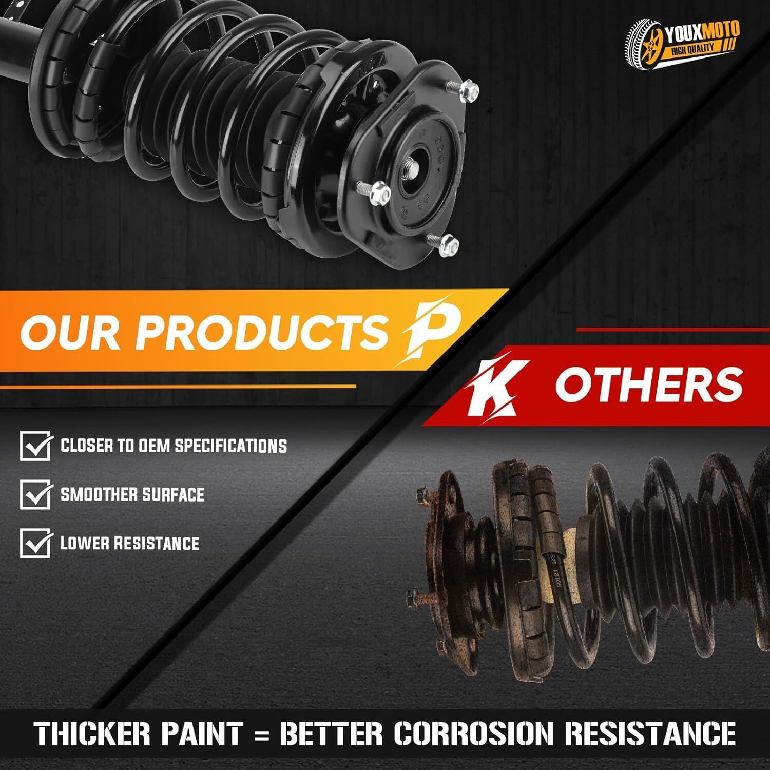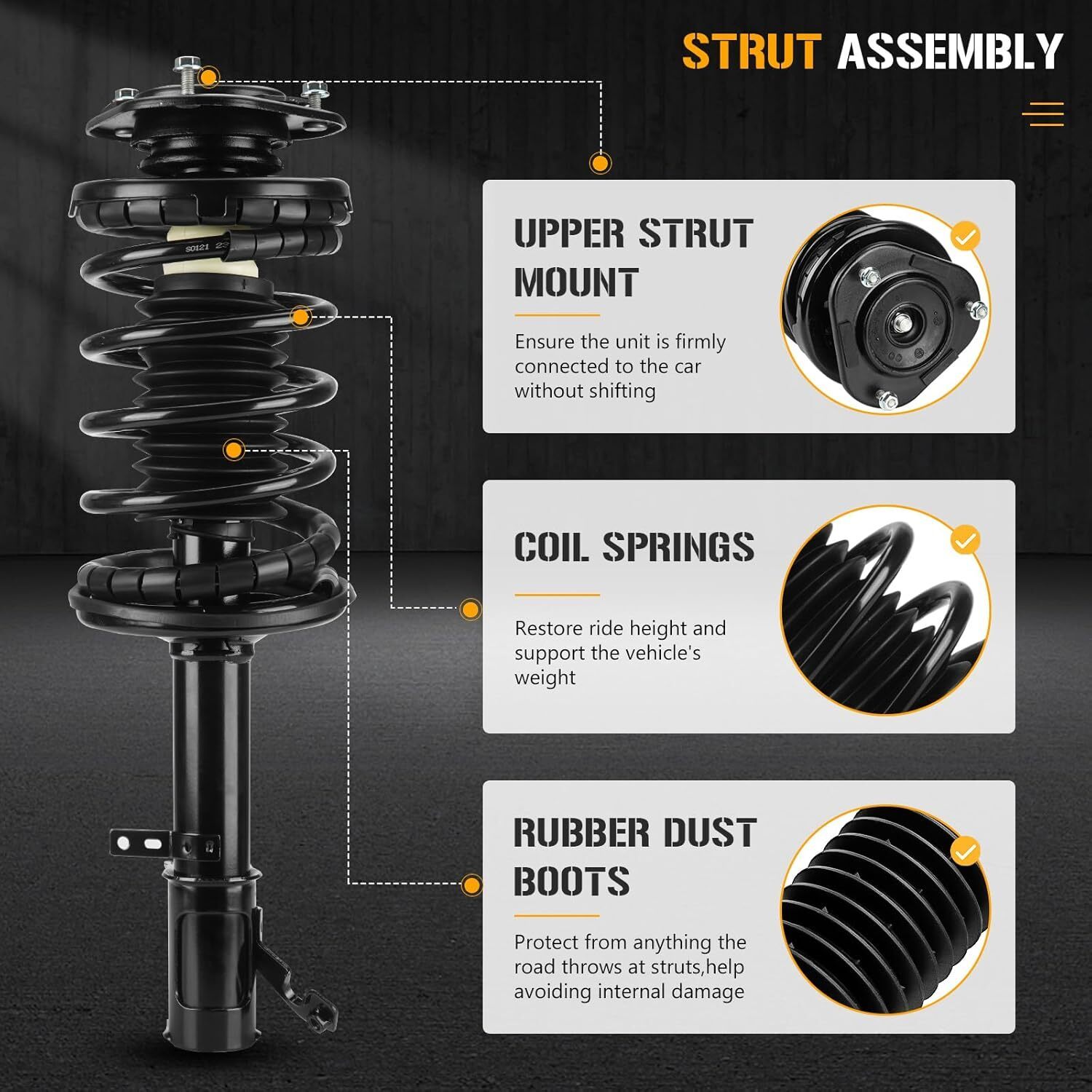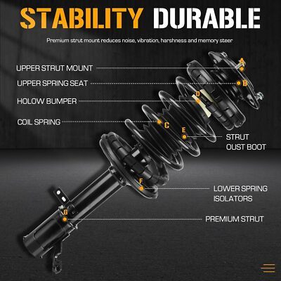 ?Compatibility?Fits for Chevrolet Prizm 1998-2002, for Toyota Corolla 1993-2002, for Geo Prizm 1993-1997 ?Includes ?2 Pcs (1 Pair) of Complete Strut Assembly which Equiped with Strut, Coil, Spring and Mounts. Replace Complete Strut Assembly: 271951R, 271952L ?Improved Safety?The Suspension Shocks are designed to improve your car's safety by providing increased stability and control on the road. They provide a smooth and comfortable ride while enhancing your car's handling and control on the road ?Durable Construction?Constructed with high-quality materials to deliver long-lasting durability and reliability. Their strong build ensures that they withstand the toughest driving conditions and last for many miles to come. ?Easy Installation?These Shocks Absorber are easy to install and require no special tools or skills. The installation process quick and straightforward.