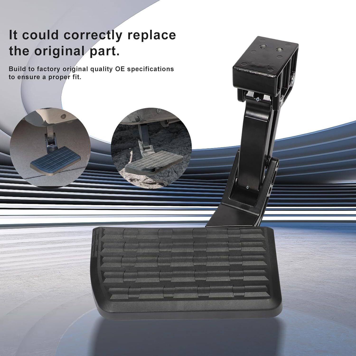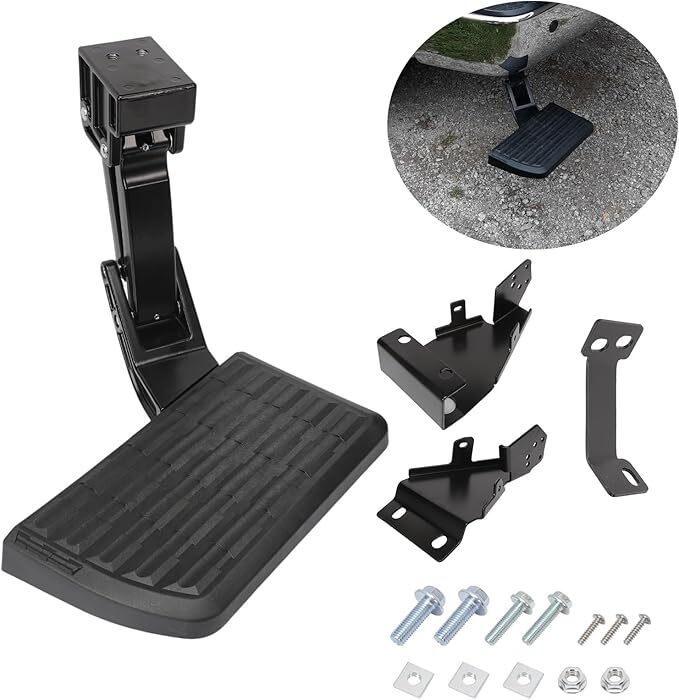 ??Compatibility: Truck rear bed steps are compatible with F-150 2021 2022 2023 (not compatible with dual exhaust) ?? OE number: ?75328-01A 7532801A. ?? HIGH QUALITY: Made of high-strength aluminum alloy frame, rated to support 300 lbs. Strong structure, corrosion resistance, high reliability and long service life. ?? FUNCTIONAL CONVENIENCE: This premium retractable bed step is extremely convenient, providing a wide, non-slip step surface to easily climb in and out of your pickup truck bed. ??Service: If you have any questions after purchasing the goods, we will give you a satisfactory answer within 24 hours.