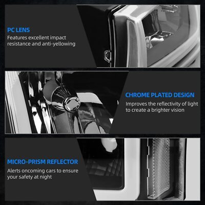 Vehicle compatibility: headlights assembly compatible with 2003-2006 Chevy Silverado 1500/1500 HD / 2500 HD / 3500; 2003-2004 Chevy Silverado 2500; 2007 Chevy Silverado 1500/1500 HD/2500 HD/3500 Classic; 2003-2006 Chevy Avalanche 1500/2500 Pickup (Without Body Cladding); high beam bulb type: HB3/9005; low beam bulb type: HB4/9006; bulbs are not included Waterproof: fully sealed with solid silicon designed with one-way vents to prevent moisture from being trapped inside the housing, no corrosion or moisture worries in sorts of weather conditions Brighter lighting: the metallic parabolic reflectors provide more light output to create a broader and smoother beam Safety reflector: the sided micro-prism reflector makes the oncoming cars or passerby quickly notice you at night, ensuring your driving safety and others' Impact resistance: the polycarbonate lens tough housing are highly resistant to shock, vibration for any tough road; professional installation would be highly recommended
