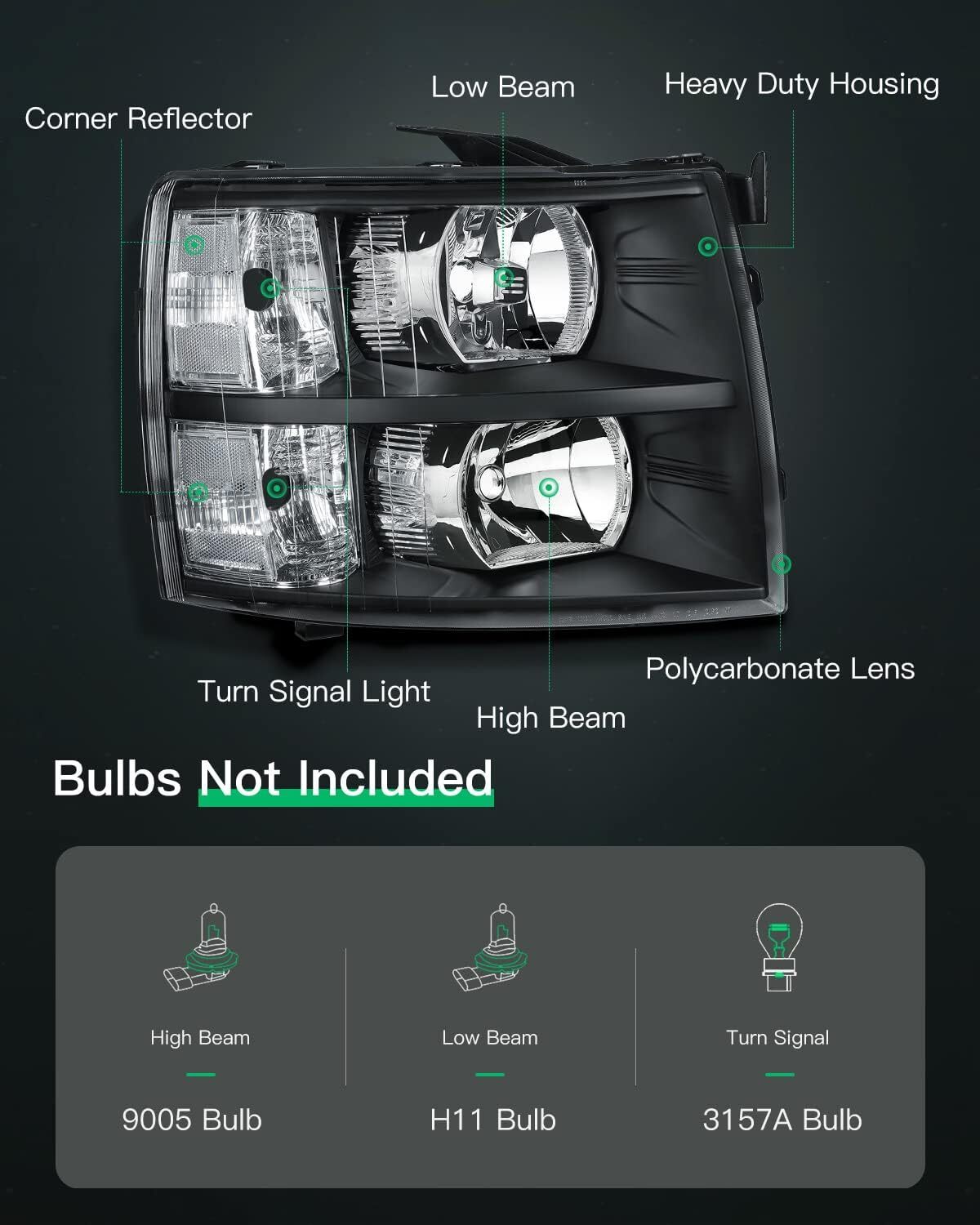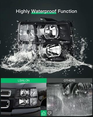LSAILON Headlight Assembly Replacement Fit 2007-2013 For Chevy Silverado 1500