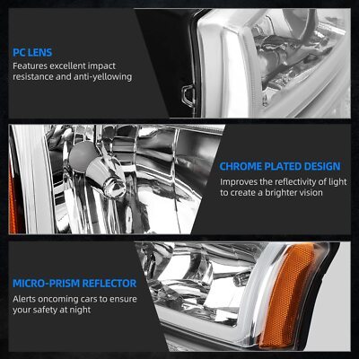 Vehicle compatibility: headlights assembly compatible with 2003-2006 Chevy Silverado 1500/1500 HD / 2500 HD / 3500; 2003-2004 Chevy Silverado 2500; 2007 Chevy Silverado 1500/1500 HD/2500 HD/3500 Classic; 2003-2006 Chevy Avalanche 1500/2500 Pickup (Without Body Cladding); high beam bulb type: HB3/9005; low beam bulb type: HB4/9006; bulbs are not included Waterproof: fully sealed with solid silicon designed with one-way vents to prevent moisture from being trapped inside the housing, no corrosion or moisture worries in sorts of weather conditions Brighter lighting: the metallic parabolic reflectors provide more light output to create a broader and smoother beam Safety reflector: the sided micro-prism reflector makes the oncoming cars or passerby quickly notice you at night, ensuring your driving safety and others' Impact resistance: the polycarbonate lens tough housing are highly resistant to shock, vibration for any tough road; professional installation would be highly recommended