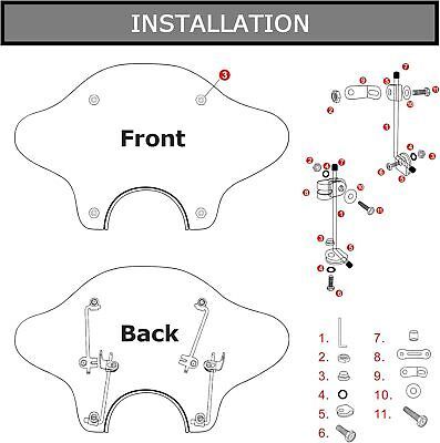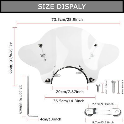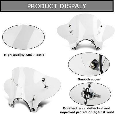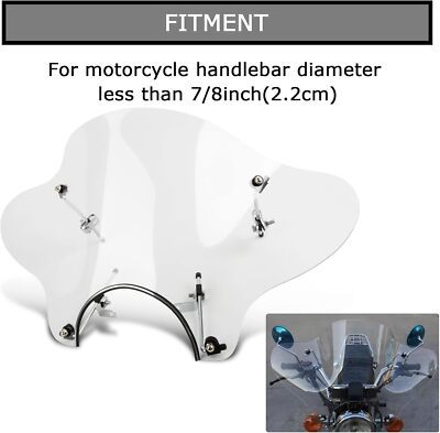 ?Fitment?For most handlebar less than 7/8" ?Color?2 color:Black Clear ?Material?High Quality ABS Plastic ?Application?Excellent wind deflection and improved protection against wind ?Package?1 * Windshield (Include All accessories)