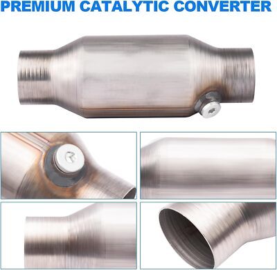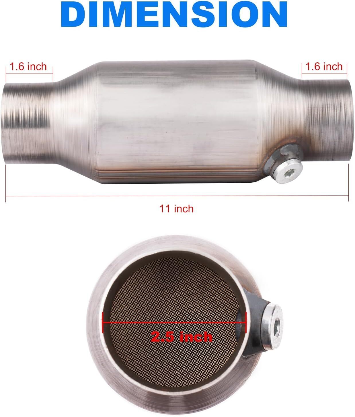 Function: This three-way catalytic converter can fix malfunctions and noises, purify the exhaust of the car, it meets or exceeds the original factory standard and has been tested by factory Specification: 2.5Inch Catalytic Converter Inlet Outlet Diameter 2.5Inch 2 pcs Be sure to match your vehicle's exhaust. Material: Catalytic convert made of stainless steel, Ensures excellent oxygen storage capacity and long service life, provides you with excellent clean air performance, restores quietness to your vehicle, and restores a good driving experience for you Installation: Our catalytic converters have been factory tested to be a perfect match to the original vehicle and are ready for immediate installation! Note: Universal catalytic converter cannot be shipped to California Colorado New York Maine.