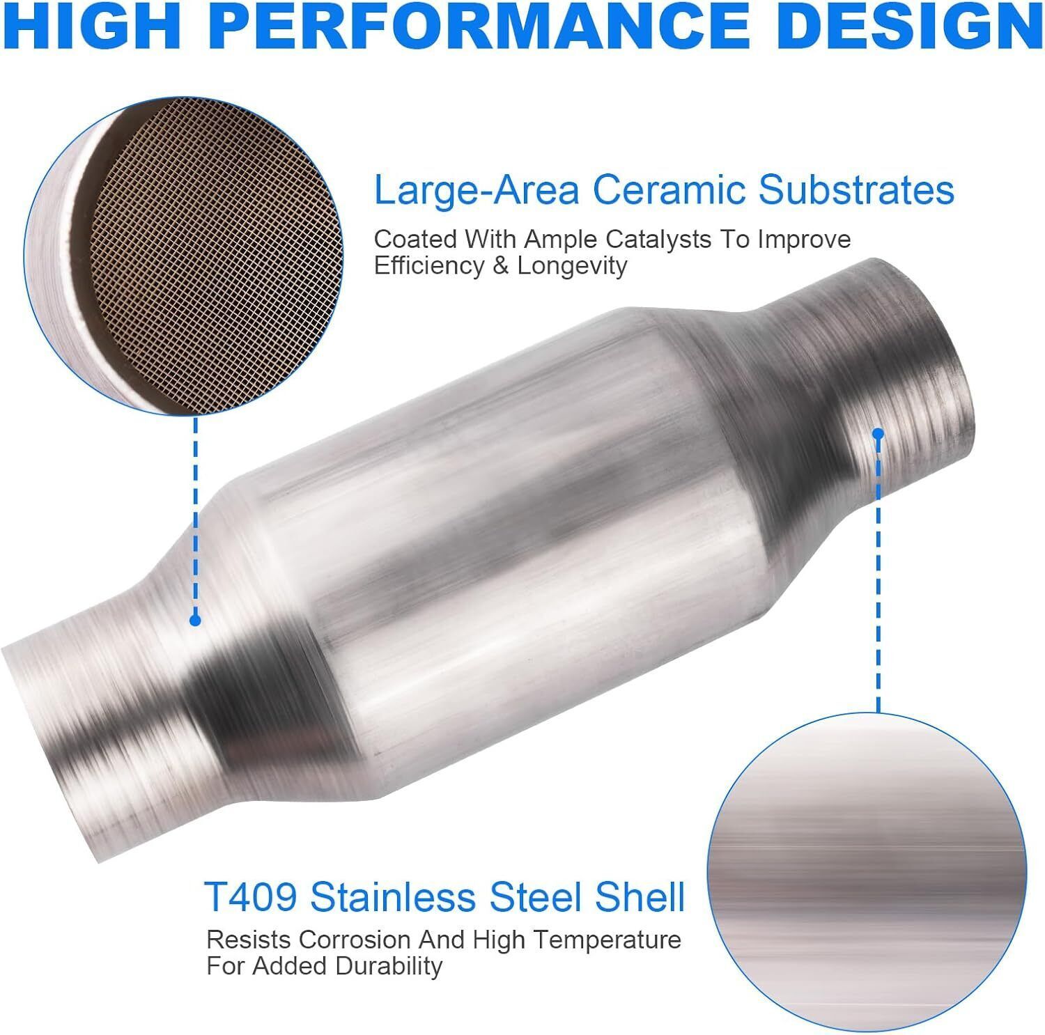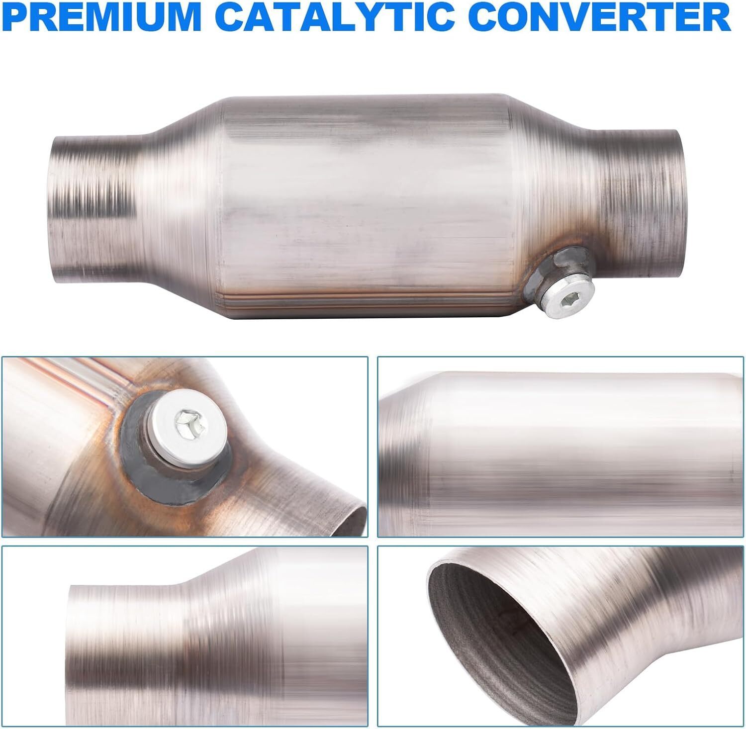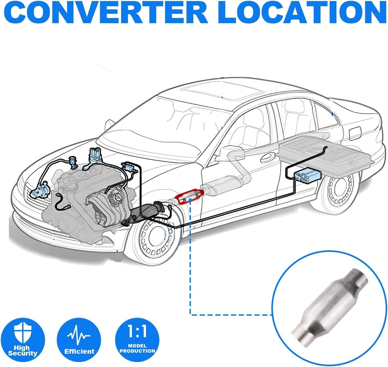 Function: This three-way catalytic converter can fix malfunctions and noises, purify the exhaust of the car, it meets or exceeds the original factory standard and has been tested by factory Specification:2.25Inch Catalytic Converter Inlet Outlet Diameter 2.25Inch 2 pcs Be sure to match your vehicle's exhaust. Material: Catalytic convert made of stainless steel, Ensures excellent oxygen storage capacity and long service life, provides you with excellent clean air performance, restores quietness to your vehicle, and restores a good driving experience for you Installation: Our catalytic converters have been factory tested to be a perfect match to the original vehicle and are ready for immediate installation! Note: Universal catalytic converter cannot be shipped to California Colorado New York Maine.