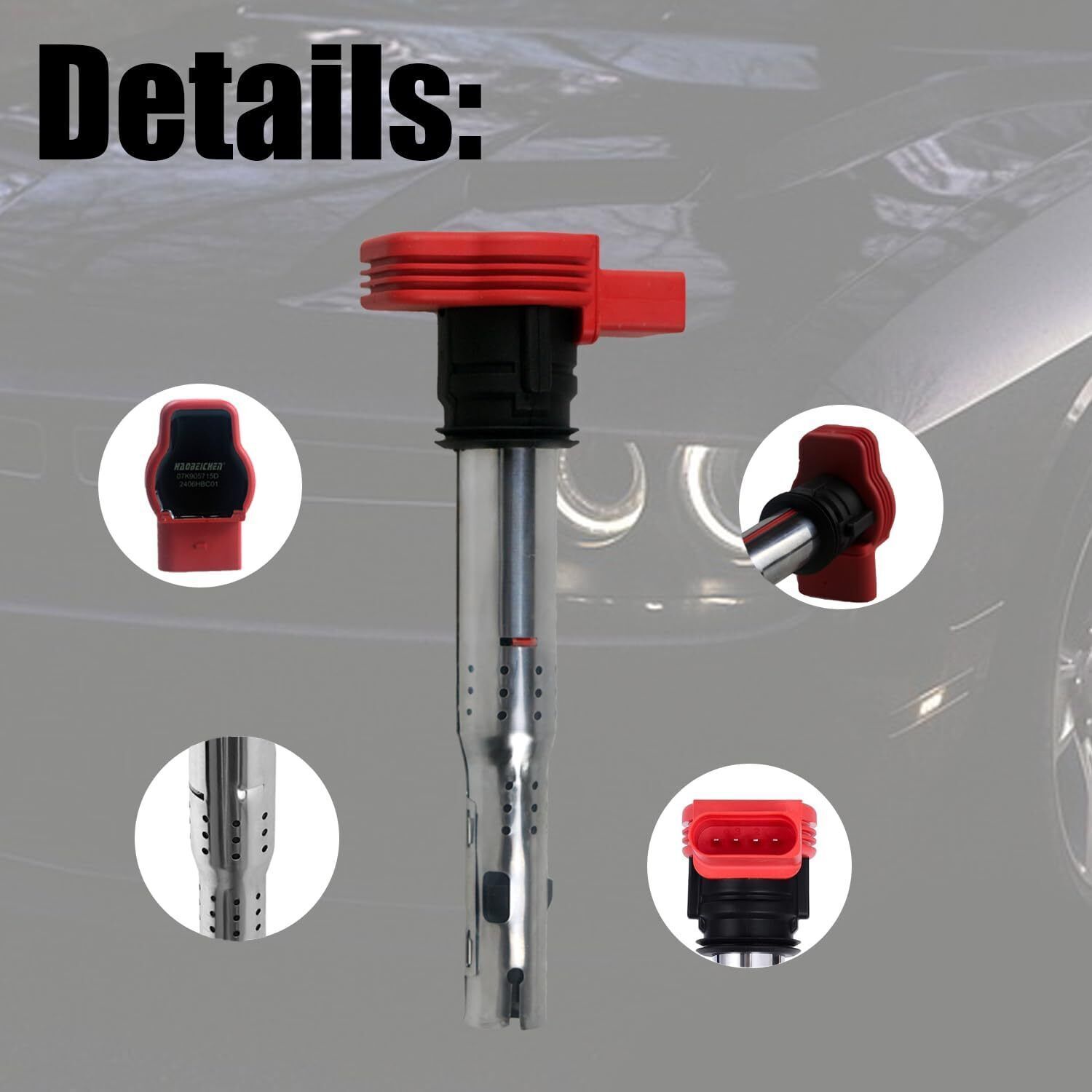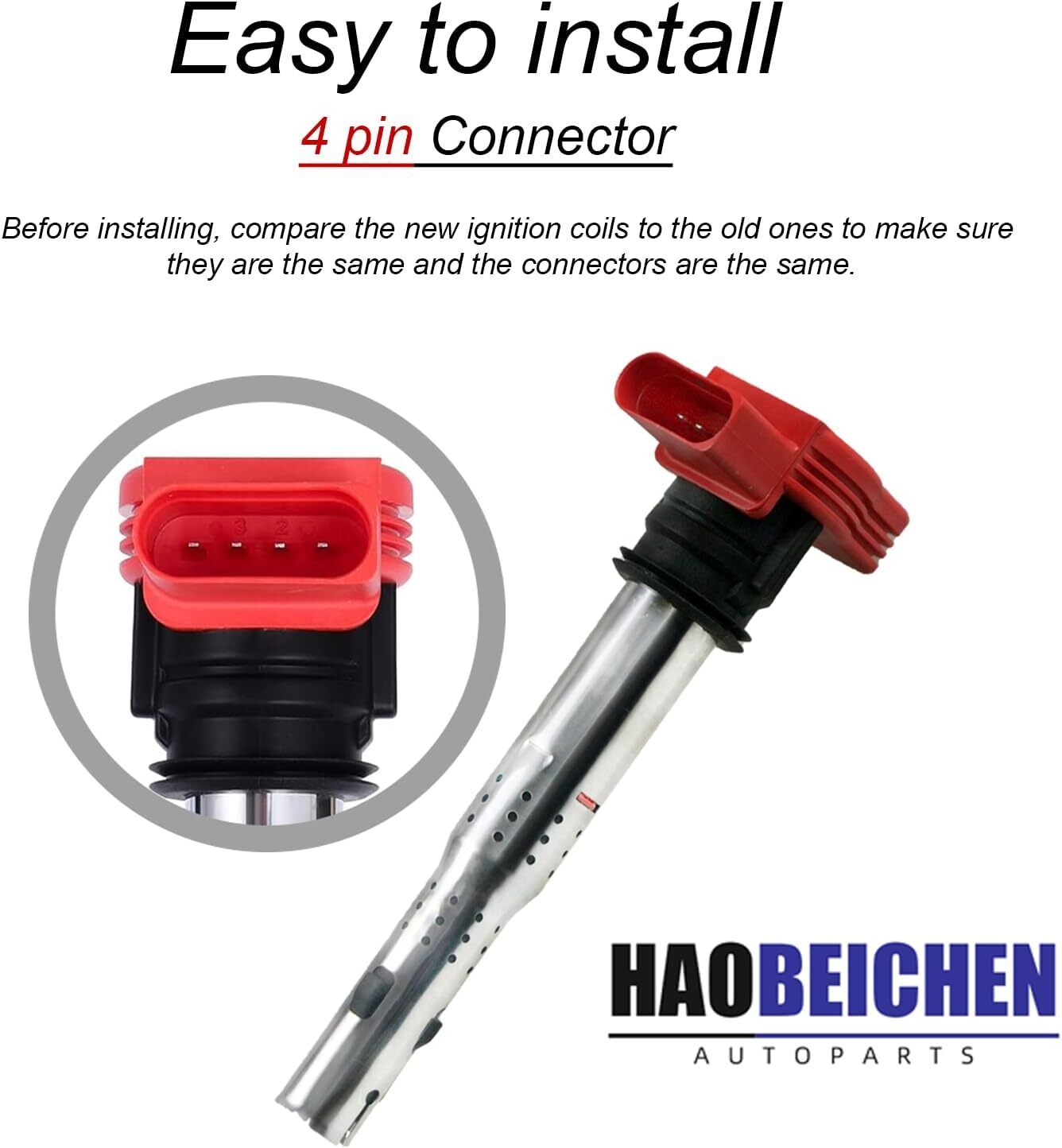 Ignition Coil Packs: This ignition coil is compatible with Audi A4/A5/A6/A7/Q5/Q7/R8/S4/S5/TT/TTS ( 2006-2016 ) for Volkswagen MK5/MK6/VW Golf/Rabbit/Passat/CC/Tiguan ( 2006-2016 ) vehicles, please use enter your vehicle in your Amazon Confirmed Fit above to see if this part is compatible with your vehicle. Engine Coil OE: UF529, 06E905115A, 06E905115B, 06E905115C, 06E905115D, 06E905115E, 06E905115F, 06E905115G, 5C1688, UF-529, 07K905715F, 06H905115B, 95860210200, C1631, E1029, please carefully compare these OE numbers with your original numbers before placing an order. The Function of the Coil: It acts as an induction coil, converting the vehicle's 12 volt voltage into thousands of volts, which are required to cross the spark plug gap and ignite the engine's air fuel mixture. It is a part of the vehicle's ignition system. And the coil that is compatible with the original factory is easy and fast to install. Symptoms of Coil Malfunction: If these phenomena occur in your vehicle: ? engine misfire, unstable idle, and power outage. ? Check that the engine indicator light is on. ? The car did not start. You should check if the coil has been replaced. HAOBEICHEN Coils: The car owners should have at least one set of spare ignition coils to prevent faulty coils from occurring after long-term driving. HAOBEICHEN coils provide a one-year maintenance period for all customers. If you encounter any quality, unsuitable or logistics issues, please feel free to contact us at any time.