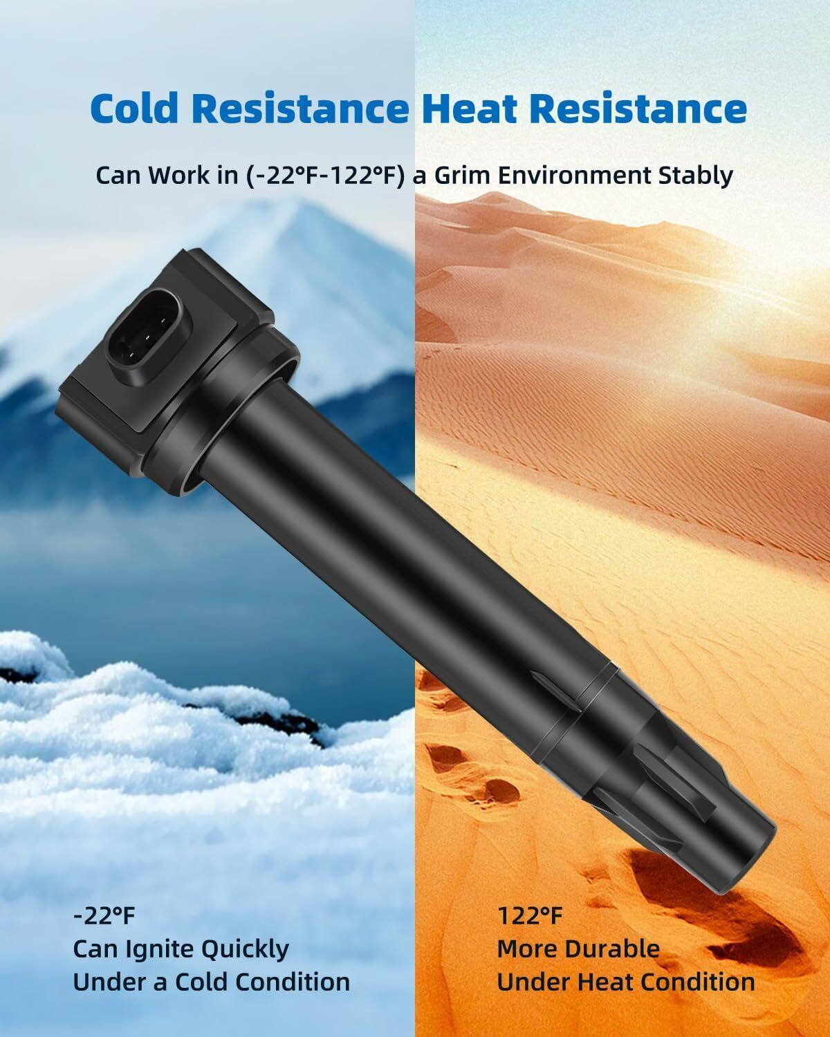 Compatibility : for Dodge 2007 2008 2009 Caliber 1.8L, 2007 2008 2009 2010 2011 2012 Caliber 2.0L, 2007 2011 Caliber 2.4LCompatible with for Jeep 2007 2008 2009 2010 2011 2012 2013 2014 2015 2016 2017 Compass 2.0L 2.4L and Patriot 2.0L 2.4L Replace OEM Part Number : UF557, 4606824AB, 4606824for ford AC Premium Quality Long Lifespan : ECCPP coils and spark plugs are built to achieve or exceed OE specifications, enhanced reliability and high performance. High conductive copper wire high dielectric performance epoxy, Precise, corrosion-resistant connections ensure excellent electrical connectivity and lead to a long service life Enhanced Coil and Spark Plug : Upgrade 15% more energy than OE coils and improve engine performance. TheIGNITION coils provide spark for your engine. Over time your factoryIGNITION coil and plugs will fail leading to poor gas mileage, misfire, hesitation, check engine light (CEL) and VSC warning lights, please replace your coils and plugs together to provide superior cold - start performance and a smoother running engine Non-Infringement Disclaimer for Auto Parts Sales:Please note that all references to brand names and models are for compatibility purposes only and do not imply any affiliation or endorsement by the original manufacturer