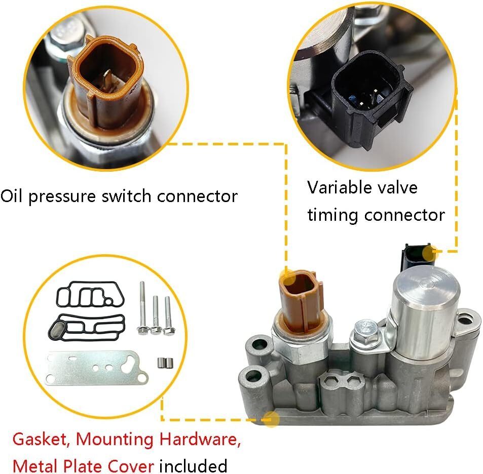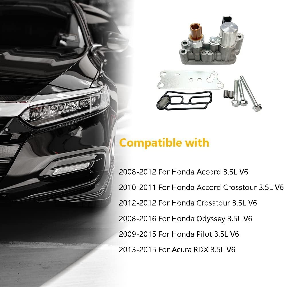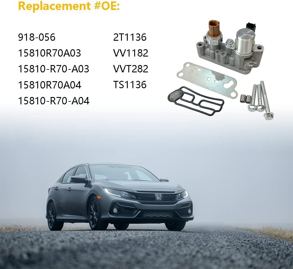 OEM number: 918-056 | 15810R70A03 | 15810-R70-A03 | 15810R70A04 | 15810-R70-A04 | 2T1136 | VV1182 | VVT282 | TS1136 | Compatible with 2013-2015 For Acura RDX 3.5L V6 | 2008-2012 For Honda Accord 3.5L V6 | 2010-2011 For Honda Accord Crosstour 3.5L V6 | 2012-2012 For Honda Crosstour 3.5L V6 | 2008-2016 For Honda Odyssey 3.5L V6 | 2009-2015 For Honda Pilot 3.5L V6 | Package includes: 1 X Variable Timing Solenoid Valve (with gasket, metal plate cover, mounting hardware)
