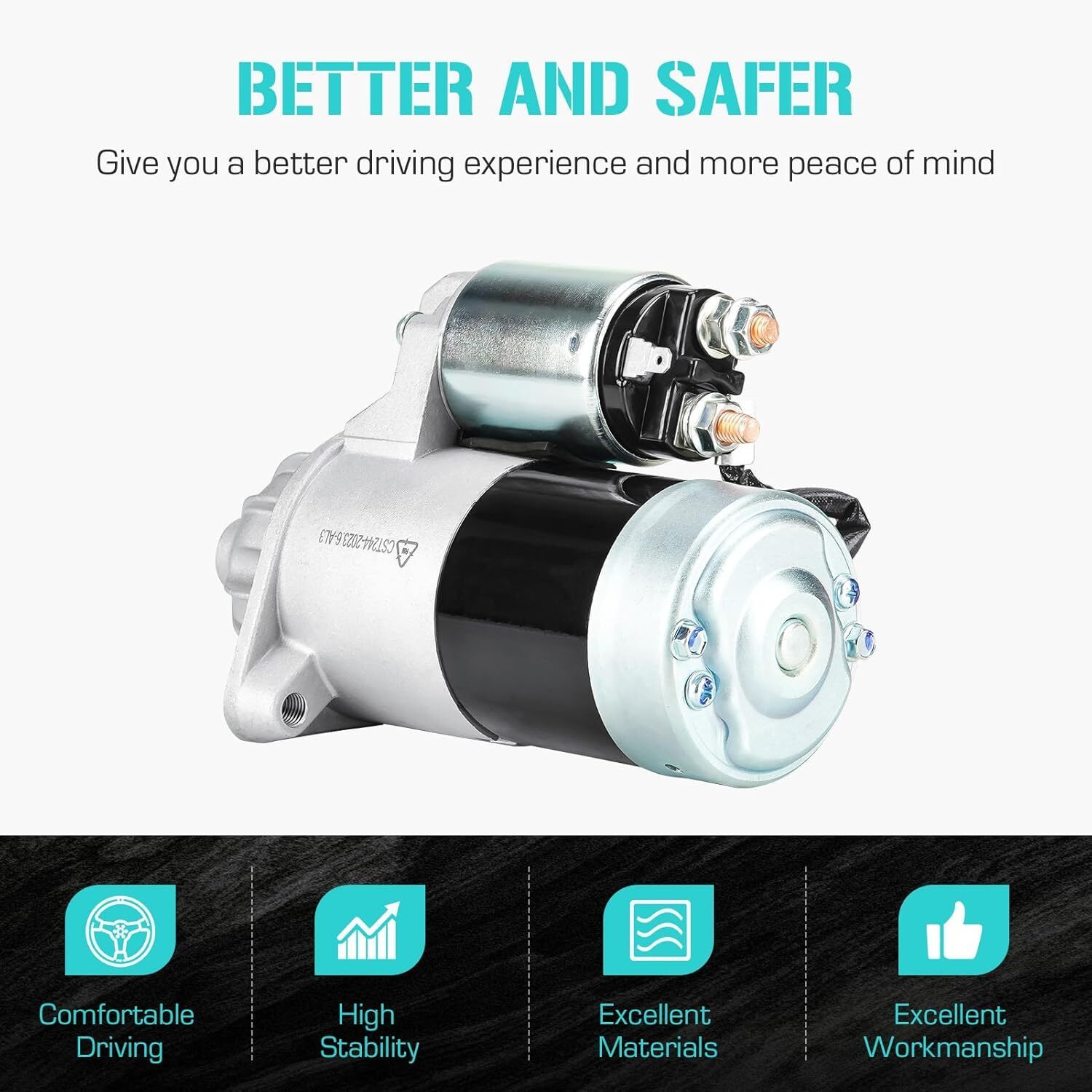 Starter w/Manual Transmission Fit for Hyundai Elantra 1.8L 2.0L 1996-2006, for Tiburon 2.0L 1997-2001 2003-2005, for Tucson 2.0L 2005-2009, for Kia Spectra 2.0L 2004-2006, 410-40013, 410-40044
