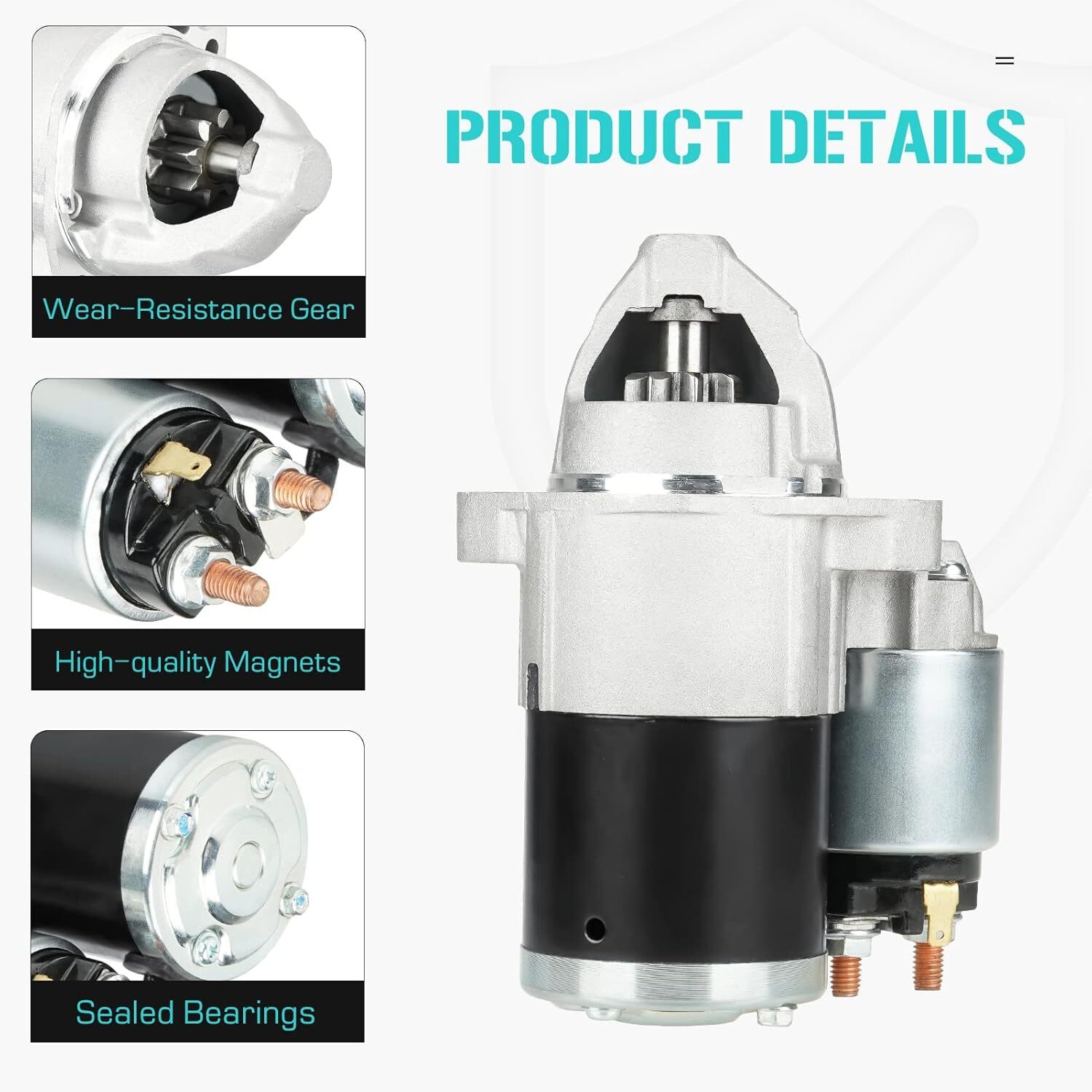 The gears of the starter are specally processed and tested by us. They are wear-resistant and anti-skid, not oasy to sllp when starting.