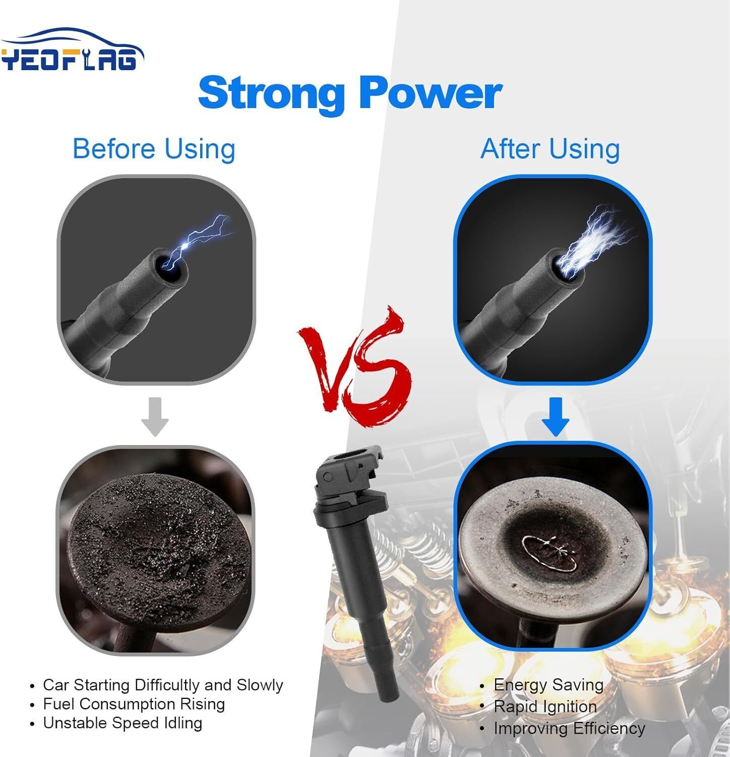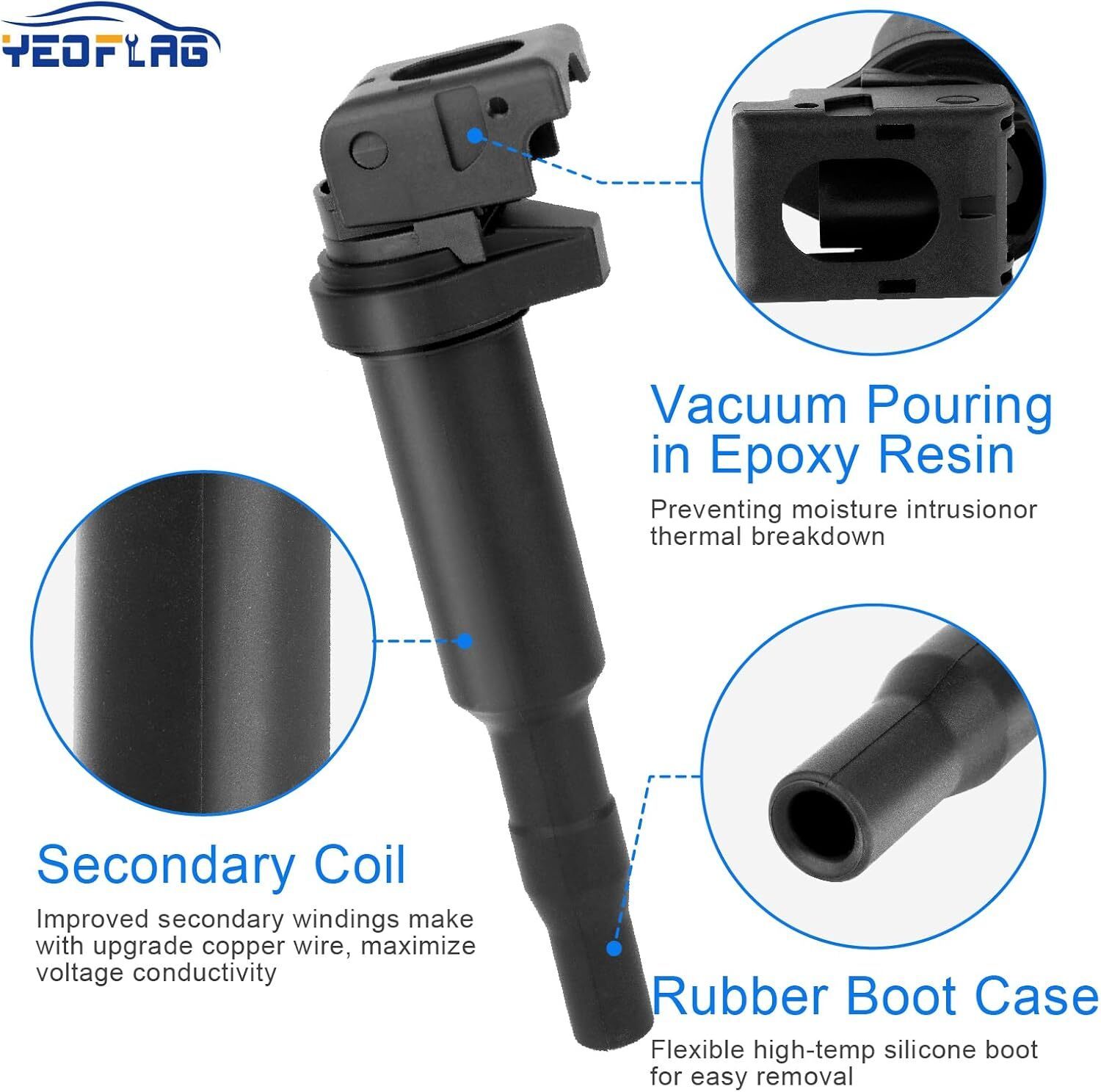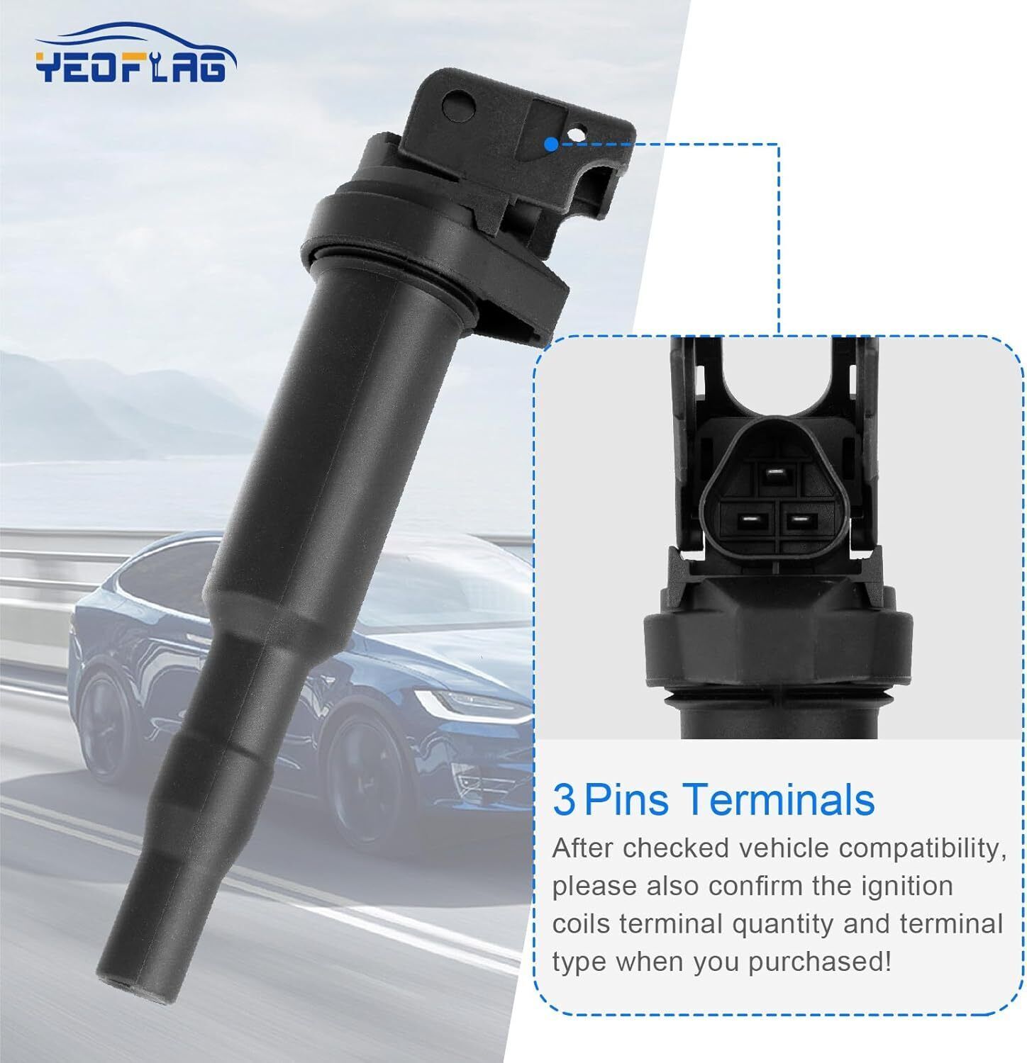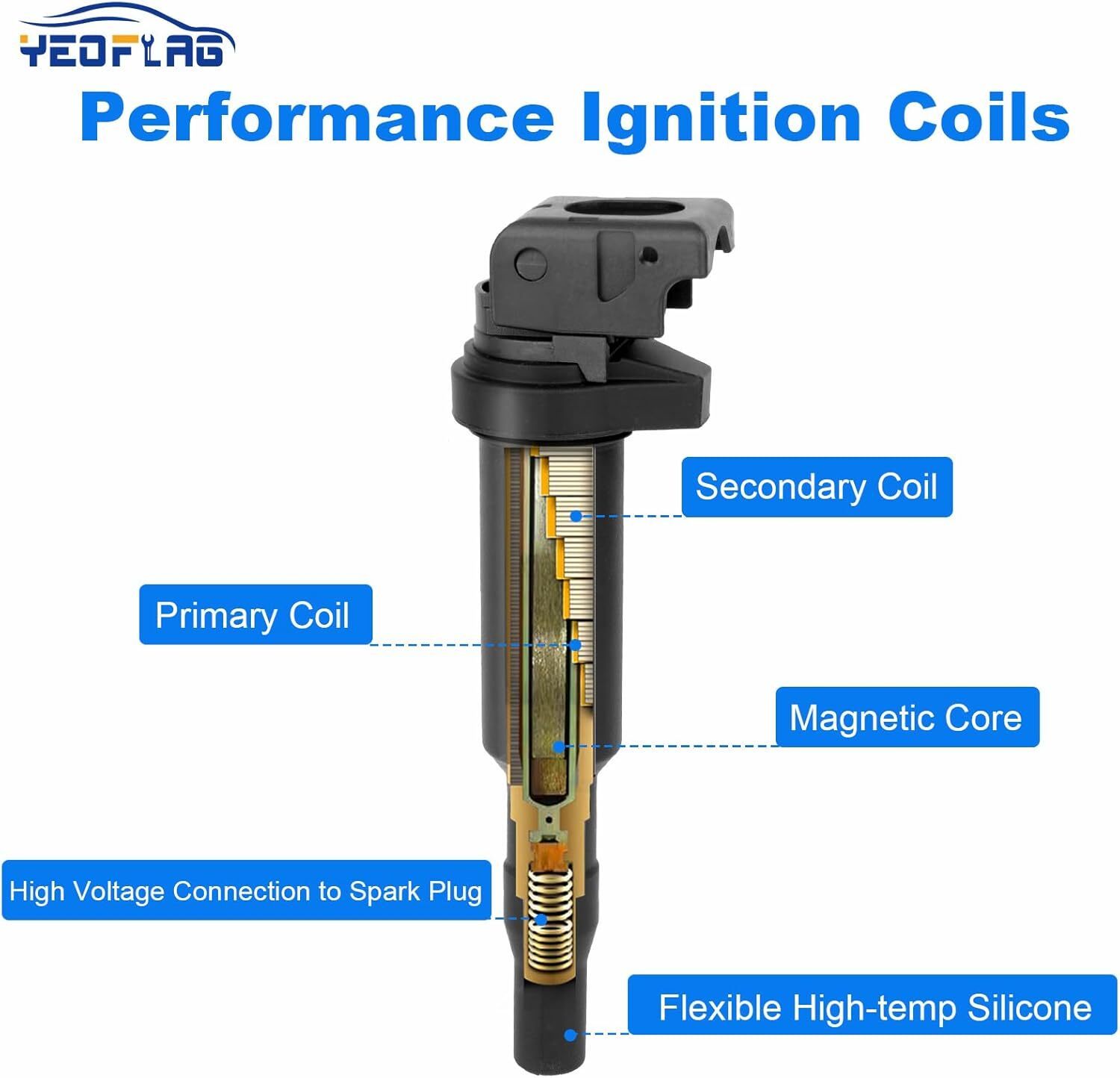 Wide Compatibility: Ignition Coil Pack Compatible with BMW 128I L6 3.0L 2008-2013, for 135I L6 3.0L 2008-2010, for 320I L6 2.2L 2003-2005, for 323I L6 2.5L 2007-2011, for 325CI L6 2.5L 2001-2006, 325I L6 2.5L 2003-2006, for 325XI L6 2.5L 2003-2005, for 325XI L6 3.0L 2006, for 328I L6 3.0L 2007-2013, for 328I XDRIVE L6 3.0L 2009-2013, for 328XI L6 3.0L 2007-2008, for 330CI L6 3.0L 2003-2006, for 330I L6 3.0L 2003-2006, for 330XI L6 3.0L 2003-2006, for 335I L6 3.0L 2007-2012, for 335I XDRIVE L6 3.0L 2009-2010, for Z4 L6 2.5L 2003-2005, for X6 L6 3.0L 2008-2011, for 740LI XDRIVE L6 3.0L 2013 Wide Compatibility: Ignition Coil Pack Compatible with BMW 335IS L6 3.0L 2011 2012, for 335XI L6 3.0L 2007-2008, for 525I L6 2.5L 2003-2005, for 525I L6 3.0L 2006-2007, for 525XI L6 3.0L 2006-2007, for 528I L6 3.0L 2008-2011, for 528I XDRIVE L6 3.0L 2009-2010, for 528XI L6 3.0L 2008, for 530I L6 3.0L 2003-2007, for 535I L6 3.0L 2008-2010, for 535I GT L6 3.0L 2010, for 535I XDRIVE L6 3.0L 2009- 2010, for 535XI L6 3.0L 2008, for 740I L6 3.0L 2011-2013, for 740LI L6 3.0L 2011-2013, for X3 L6 2.5L 2004-2006, for X3 L6 3.0L 2004-2012, for X5 L6 3.0L 2004-2010, for Z4 L6 3.0L 2003-2016, for Z4 L6 3.2L 2006-2008 Replaces for Part Number: Yeoflagtrade Ignition Coil Pack Replaces for 2137594937, 5C1698, 5C1695, 5C1749, 5C1476, 5C1401, 270085, 12137548553, 12137551049, 12137562744, 12137594938, 1213865727312130390064, 12131712223, E1022, E1098, E1070, E1092, 1788414, 1788480, 1788533, 1788541, 1788508, E1071, 221504465, IGN00468, IGN00136, GN10328, IC682, IC688, IC602, IC650, 6009, 6019, CLS1072, IC650SB, IC602SB, 50170, 50221, C694, C893, C940, C806, UF592, UF598, UF570, UF522, 9212098, C1638, C1641, C1477, C1692, C1404 Set of 6 Ignition Coil Pack: Yeoflagtrade ignition coil acts as a transformer, utilizing electromagnetic induction to generate the high voltage required for efficient combustion in the engine. Undesirable problems such as backfiring, vehicle stalling, engine jerking, rough idling poor power and so on, will be solved after replacement Note: 3-Pin Count. The number of ignition coils in the car depends on the car engine, model, and year. Please check the ignition coil part number or use Amazon's vehicle fitment tool on the top of the product detail page to confirm if the part is compatible with your vehicle before placing an order