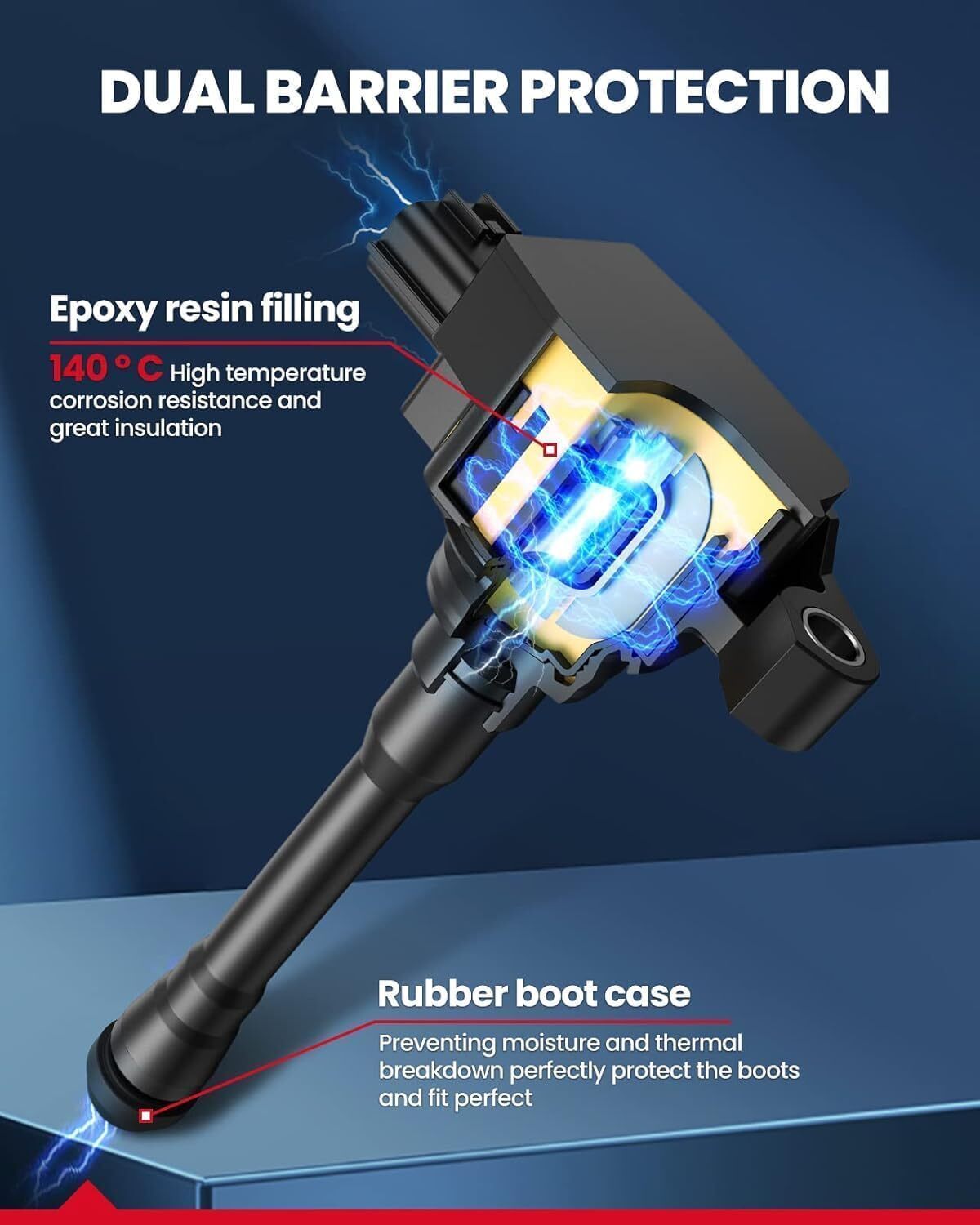 10% More Powerful Than OE Coils, Every KAX ignition coil is equipped with the enhanced high conductive copper wire, which improve the coils performance. It offers high energy output nut decreases 15% fuel consumption, providing the best performance and reliability, enhancing the engine power up to 10-15% more than OE coils