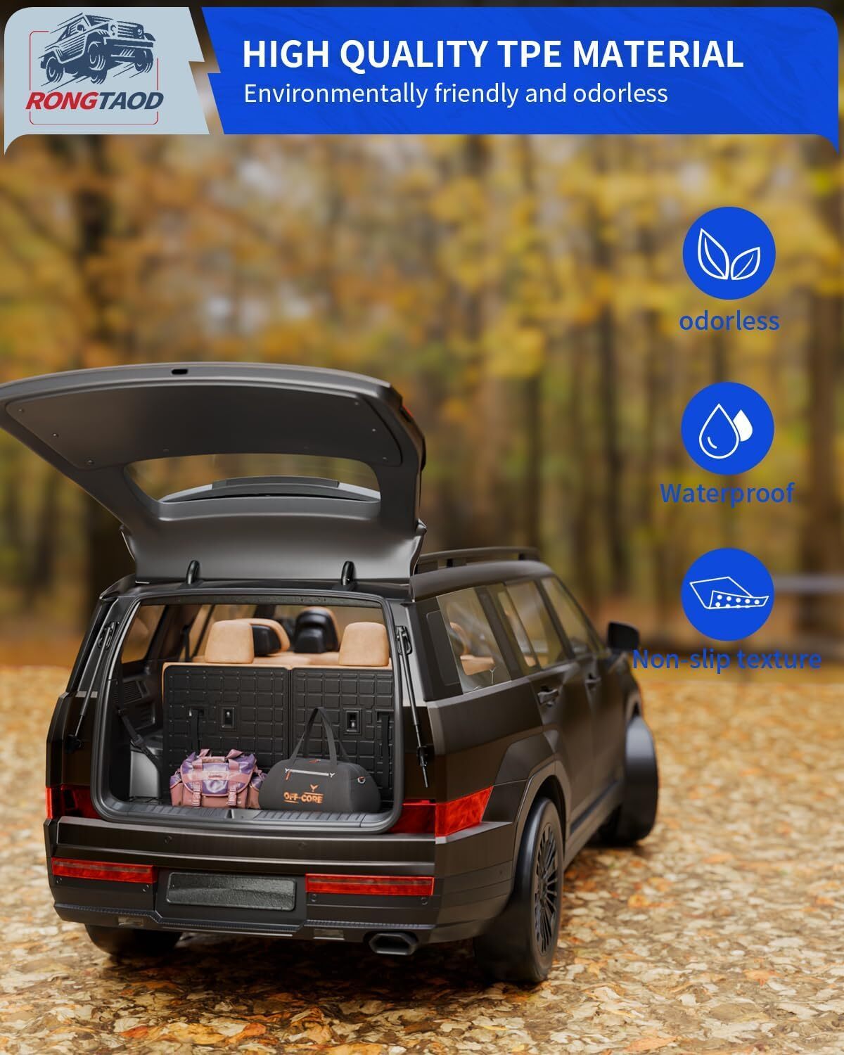 Trunk Mat with Backrest Mat+Floor Mats Rongtaod Cargo Mat Compatible with 2024 2025 Hyundai Santa Fe Trunk Mat Cargo Mat Cargo Liner All Weather Santa Fe Accessories (Trunk Mat with Backrest Mat)