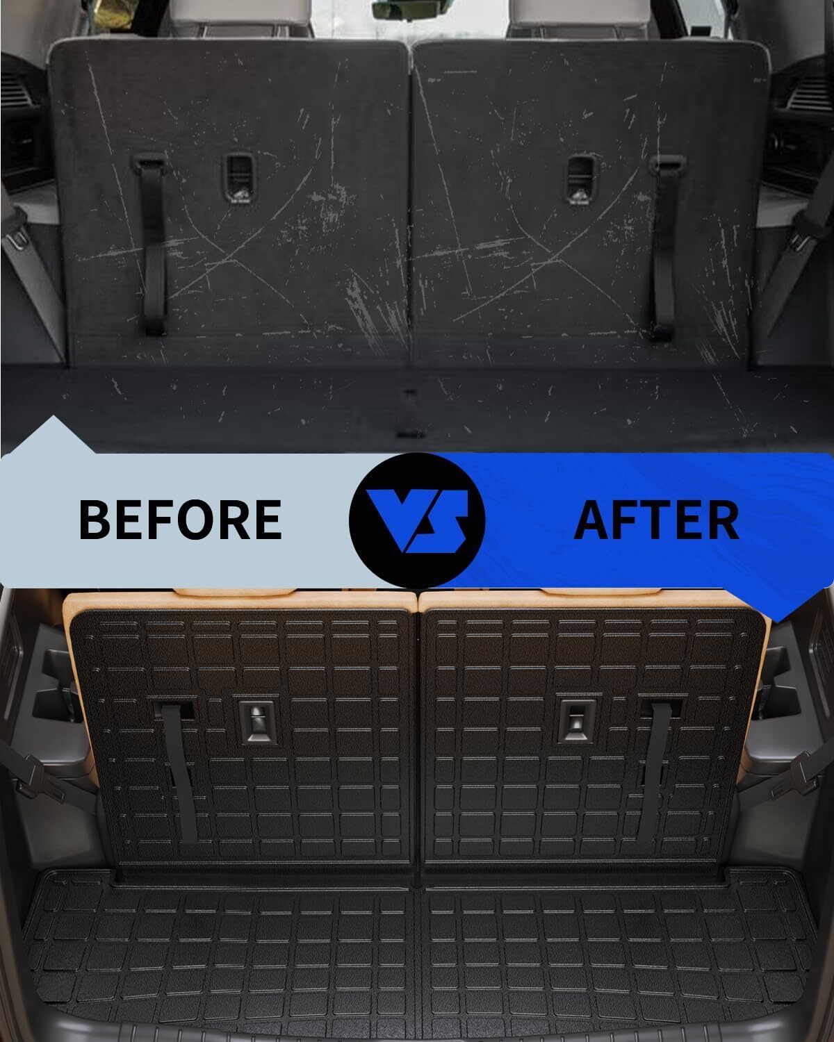 Fitment: Our trunk mat with backrest mat is designed based on the original car and is compatible with 2024 2025 Hyundai Santa Fe. It can cover every corner of the trunk well, preventing dust from dirtying the original car. Function: The raised high edges of cargo liner can effectively suppress liquid from seeping into the car from the edges. The backrest mats provides protection for the back of the seat, so you no longer have to worry about scratching the back of the seat while traveling with pets. More important, the patterns on the mat can effectively increase the friction between the mat and the object, preventing the object from colliding with the interior of the car. Material: The cargo mat with backrest mat is made of high-quality of TPE, heat-resistant, scratch-resistant and waterproof. This TPE material is environmentally friendly and healthy, and will not pose a health threat to passengers in the car. Installation: It is easy to install, just put the mat into your car, without any other tools. And the backrest mat has Velcro that can be stood firmly behind the seat. If you receive a mat with creases, don't worry, it's caused by transportation. Simply expose it to the sun to restore its flatness. Suggestion for maintenance: Daily cleaning can keep the mat clean. Warranty: If you have any problems with the cargo liner with backrest mat for 2024 2025 Santa Fe, please contact us. At the same time, our after-sales team is looking forward to your feedback on usage.