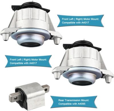 Applicable Car Models: JDMON Engine motor mount compatible with 2008-2009 Mercedes-Benz C230 2.5L, compatible with 2010-2012 Mercedes-Benz C250 2.5L, compatible with 2008-2011 Mercedes-Benz C300 3.0L. For more models, please refer to the details page. Replacement for OEM Part Number: Front Left Right Motor Mount: compatible with A4017 / EM-5859 / 9645 / 2042400917 / 2042404317. Rear Transmission Mount: compatible with A4095 / EM-5858 / 9852 / 2122400418. Benefits of Replacing Broken Engine Mounts: Reduce the engine noise and shock. Protect the engine and prolong its service life. Improve your driving comfort, smoothness and driving safety. High Strength and Durable: Our engine mounts are made from iron, aluminum and rubber, which has good durability and can withstand long-term use and various complex working conditions, reducing the frequency of maintenance and replacement. Recommendation and Services: The installation of auto parts is a very professional work, we strongly recommend that you install it under the guidance of professionals. If you have any questions, please feel free to contact us.