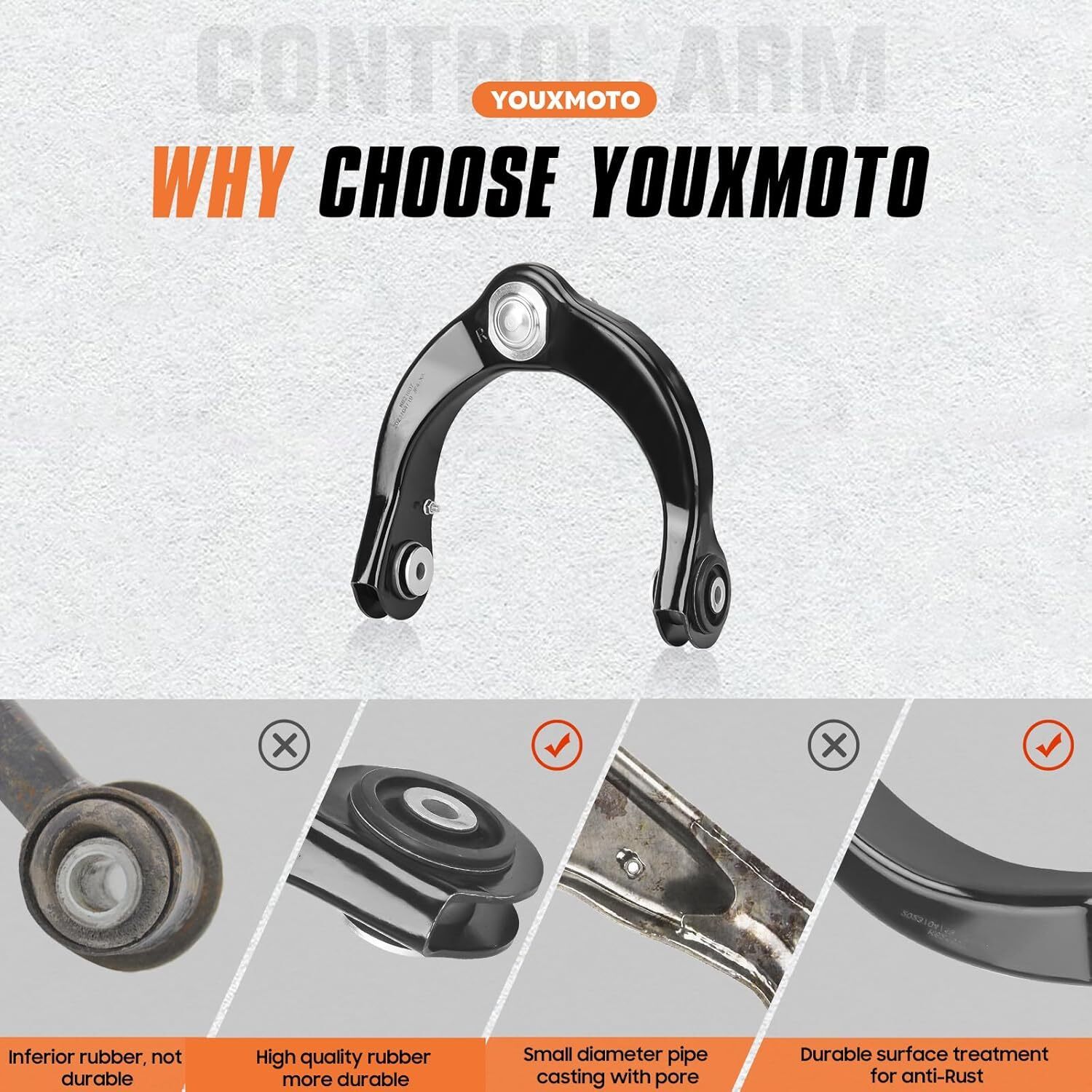 ?Compatibility?Fits for Dodge Durango 2011-2015, Fit for Jeep Grand Cherokee 2011-2015 ?Kit Includes?1x Front Driver Side Upper Control Arm w/Ball Joint, 1x Front Passenger Side Upper Control Arm w/Ball Joint ?Enhanced Structural Strength? High-strength structure can withstand repeated impact loads, making it more stable during operation ?Premium Ball Joints?For noise-free, articulation and durability, we sourced premium ball joints for our tubular upper control arms. Compared to other common ball joint brands, our ball joint exhibits one of the highest articulation angle. ?Safety?Control arm with strong torsional resistance, good stability, better response to wear and fatigue, and long service life.