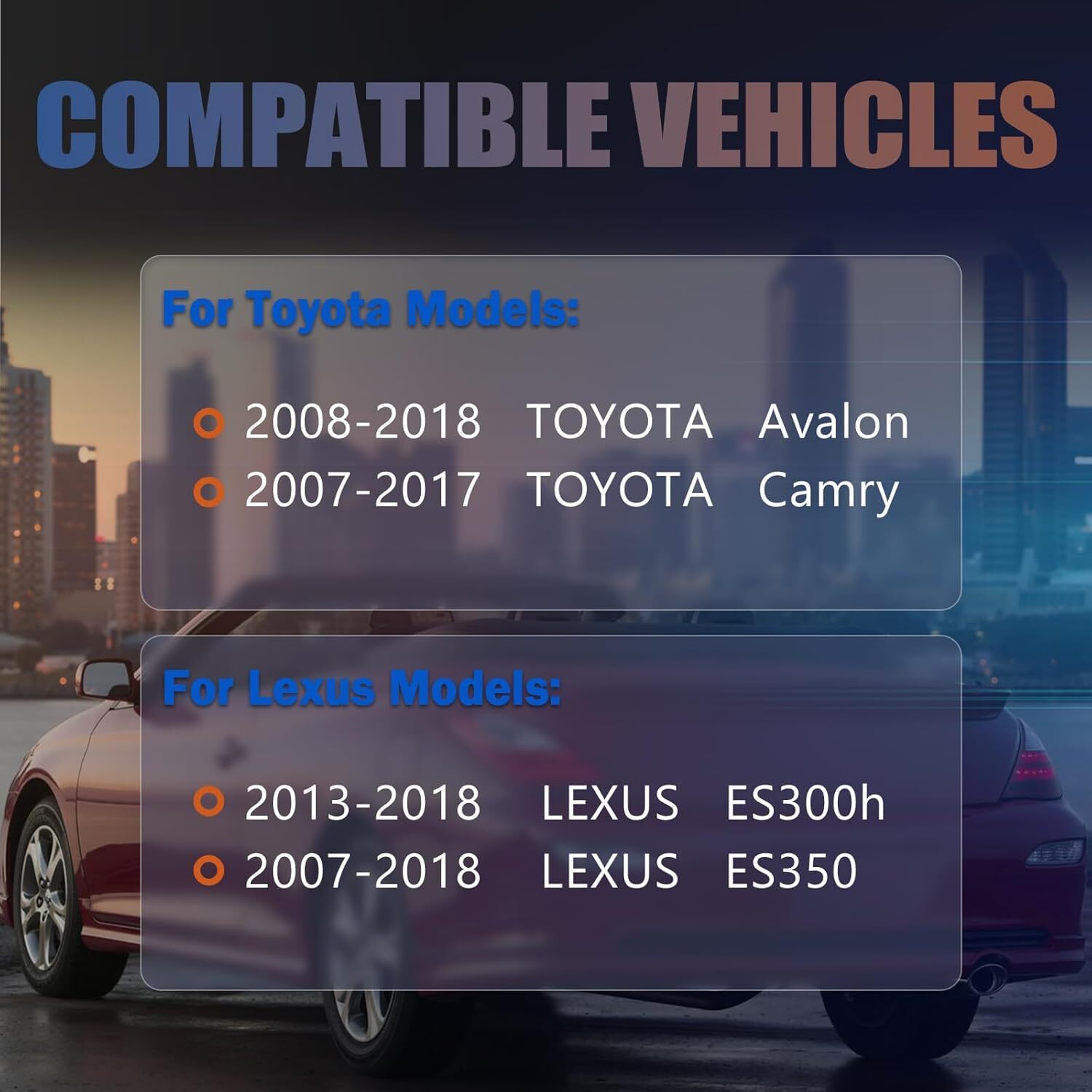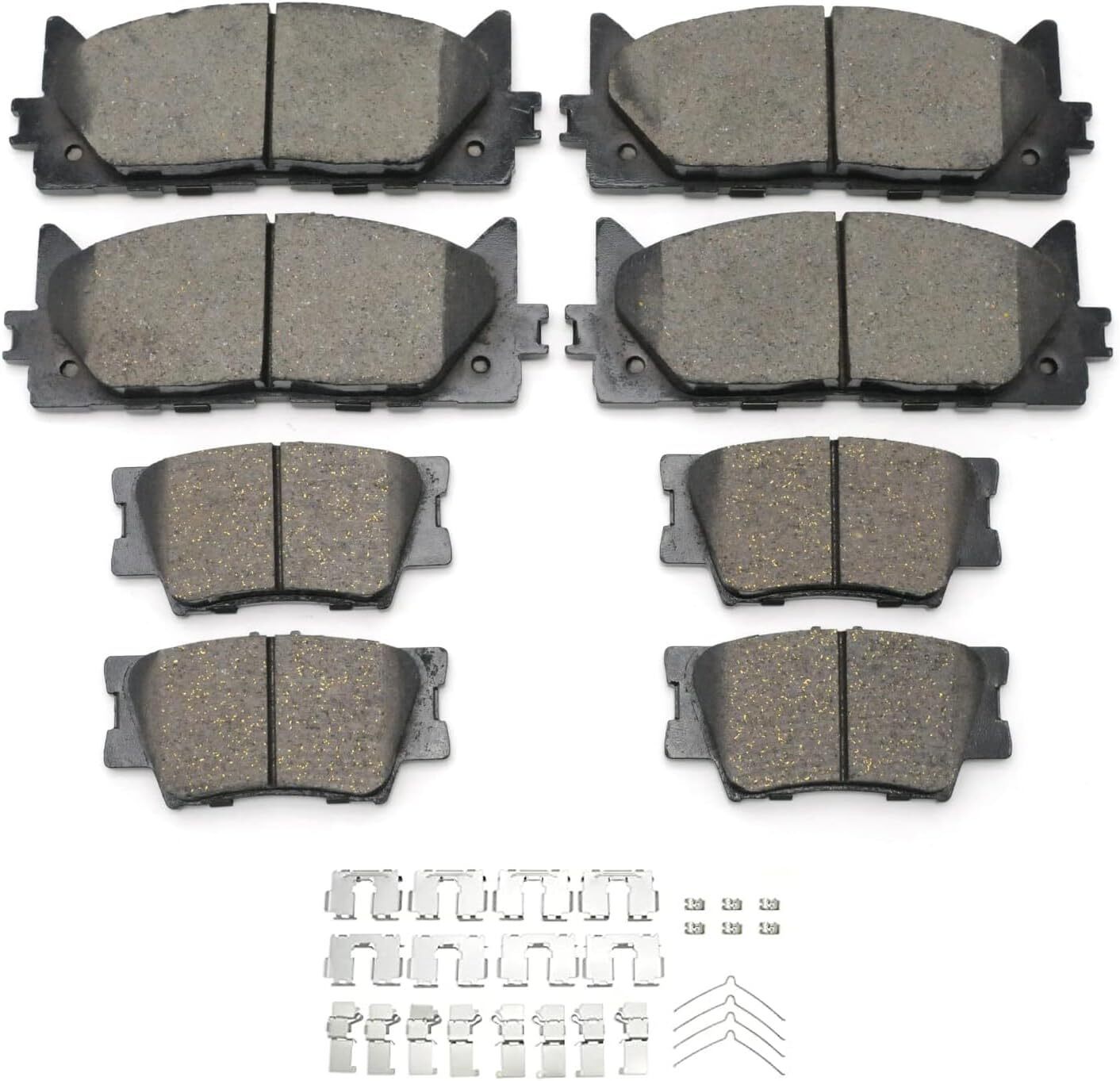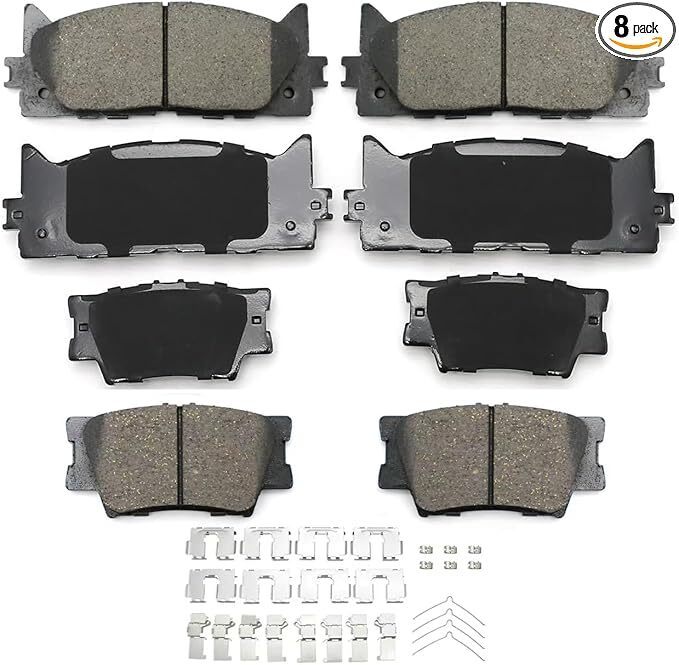 ?Vehicles?Compatible With 2013 -2018 Lexus ES300h, 2007-2018 Lexus ES350, 2008-2018 Toyota Avalon, 2007-2017 Toyota Camry ?Package Content?4x Front Brake pads D1212-8332, 4x rear Brake pads D1222-8331 ?Function?Low Dust And Less Powder,Longer Service Life,Slots and Chamfers Design,Dual-layer Rubberized Stainless Steel Shims Provide Virtually Noise-free Braking Function ?Notice? Please Verify Fitment or Application, Make Sure Our Part Will Perfectly Match For The Original Car Before Purchasing! ?Service?We Promise to provide you with better Guarantee.Usually 12-months Unlimited-mileage Quality Guarantee. We Try To Provide High Quality Products and Best Service to Our Customers. If Any Problem Please Feel Free to Contact Us .We Will Give You a Satisfactory Solution!