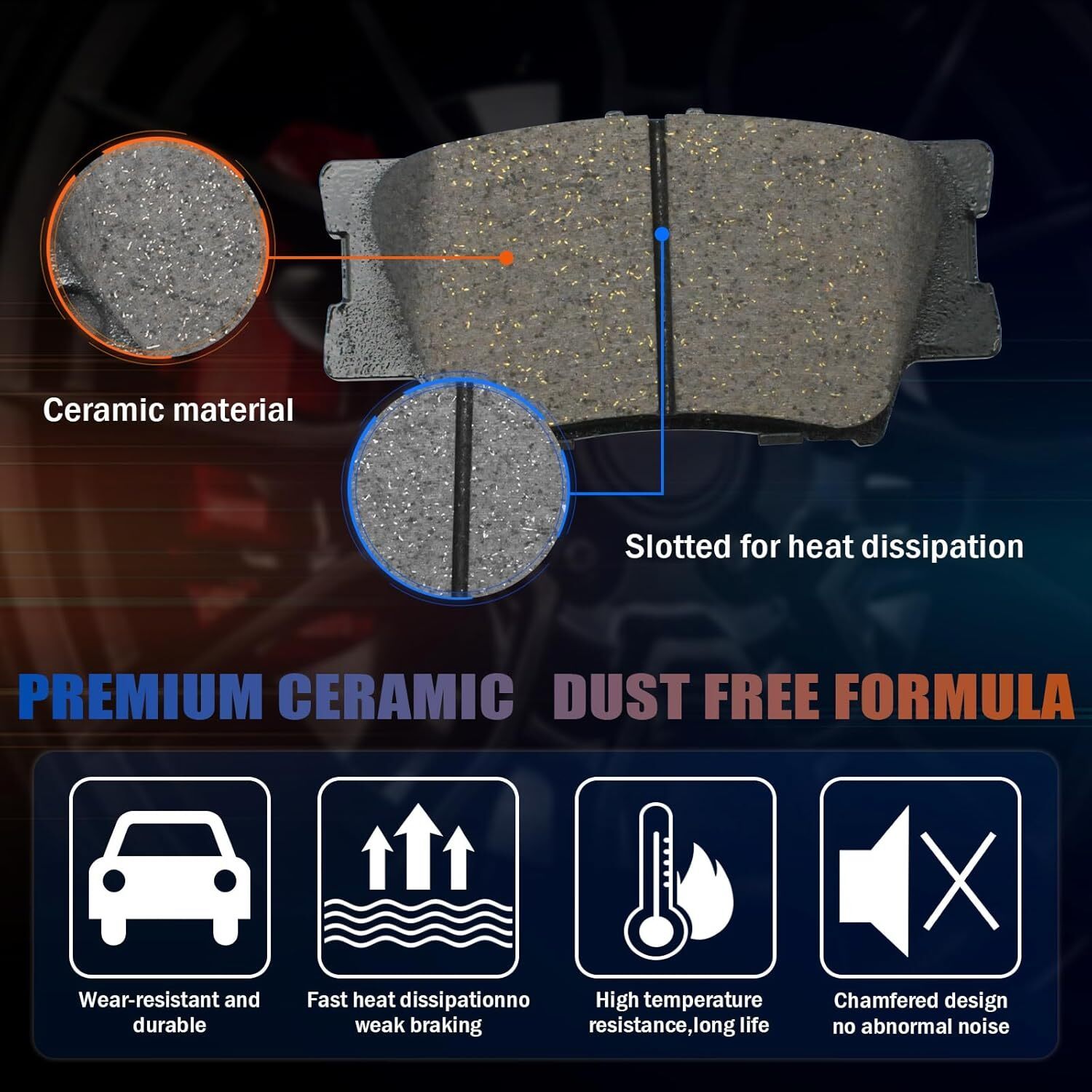 D1212,D1222 Ceramic Front Rear Disc Brake Pad Set Compatible With 2007-2017 TOYOTA Camry,2008-2018 TOYOTA Avalon,2013-2018 LEXUS ES300h, 2007-2018 LEXUS ES350