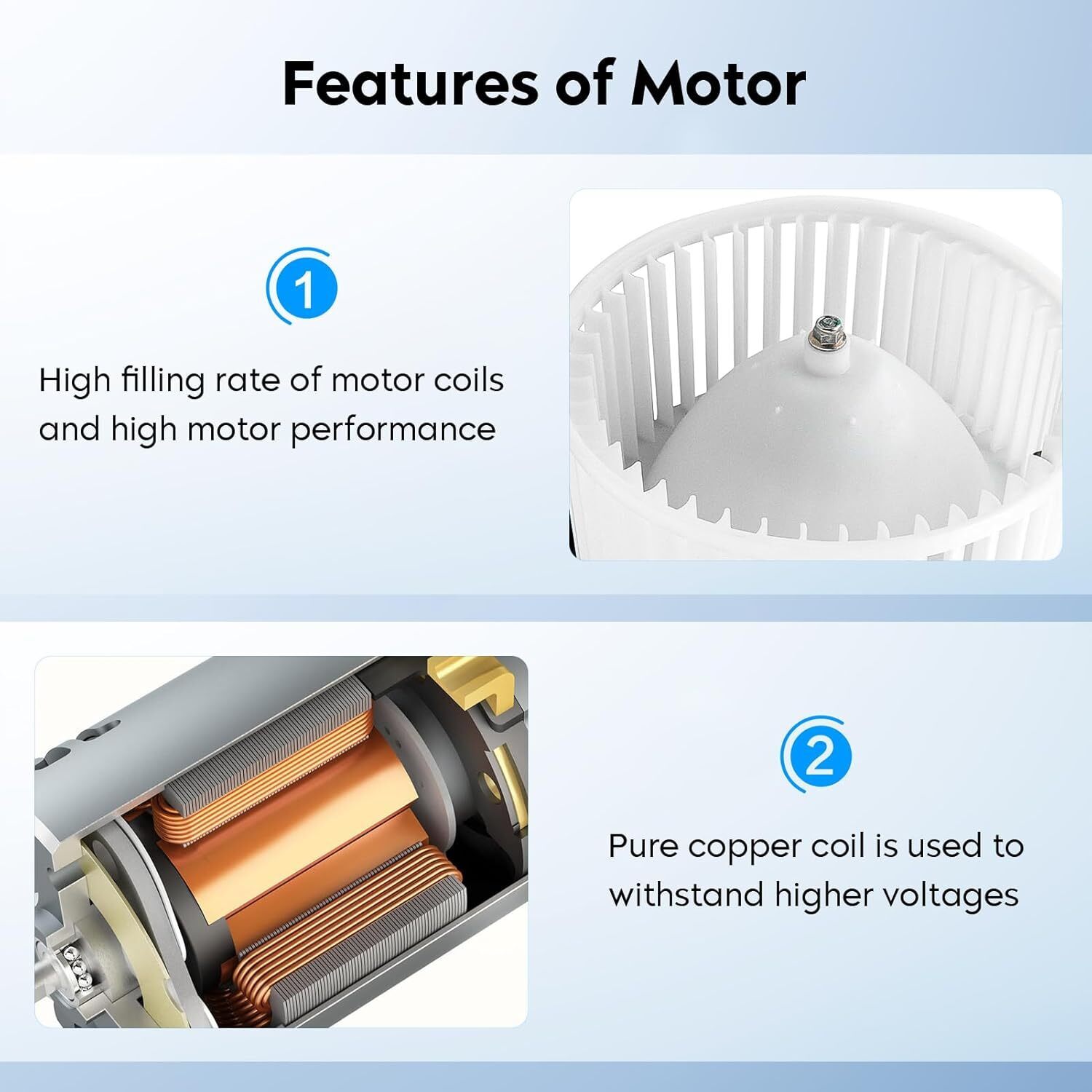 ?Vehicle Fitment?Compatible with 2002-2006 Acura RSX, 2002-2005 Civic ?Reference Number?Compatible with 700243,615-58571,79307S6MA42,79307S6MA41 ?Premium Quality?Designed to keep your vehicle's HVAC system in top shape; Durable Material: Material of rotor punching plate is silicon steel. Enameled wire is used copper enameled wire. ?Easy to Install?Same Dimensions as your part, Directly Fit; Stable characteristics and high reliability; Larger Air Volume and Lower Noise ?Attention?Please check the descriptions and compatibility chart to ensure that the replacement fits your auto before your purchasing.