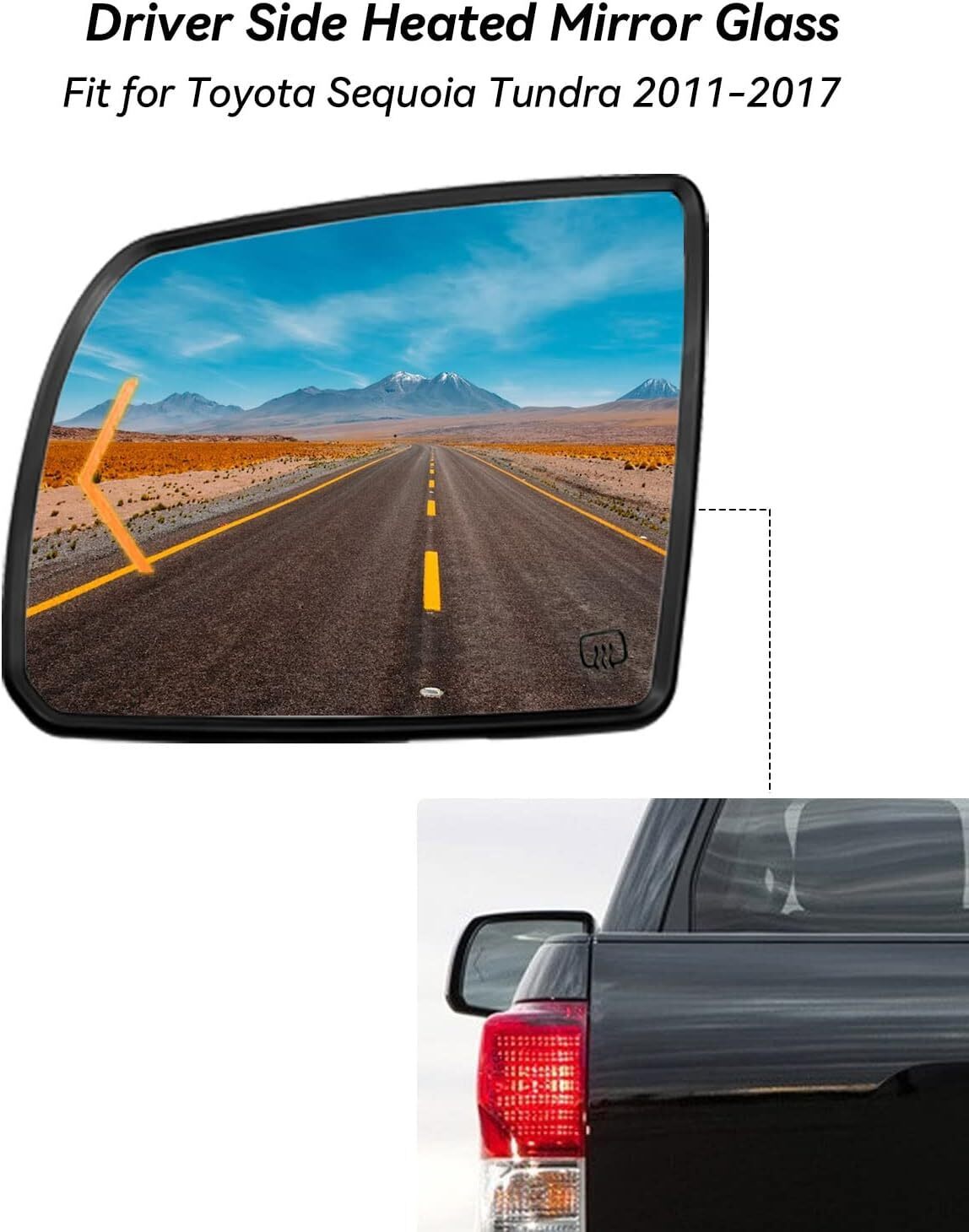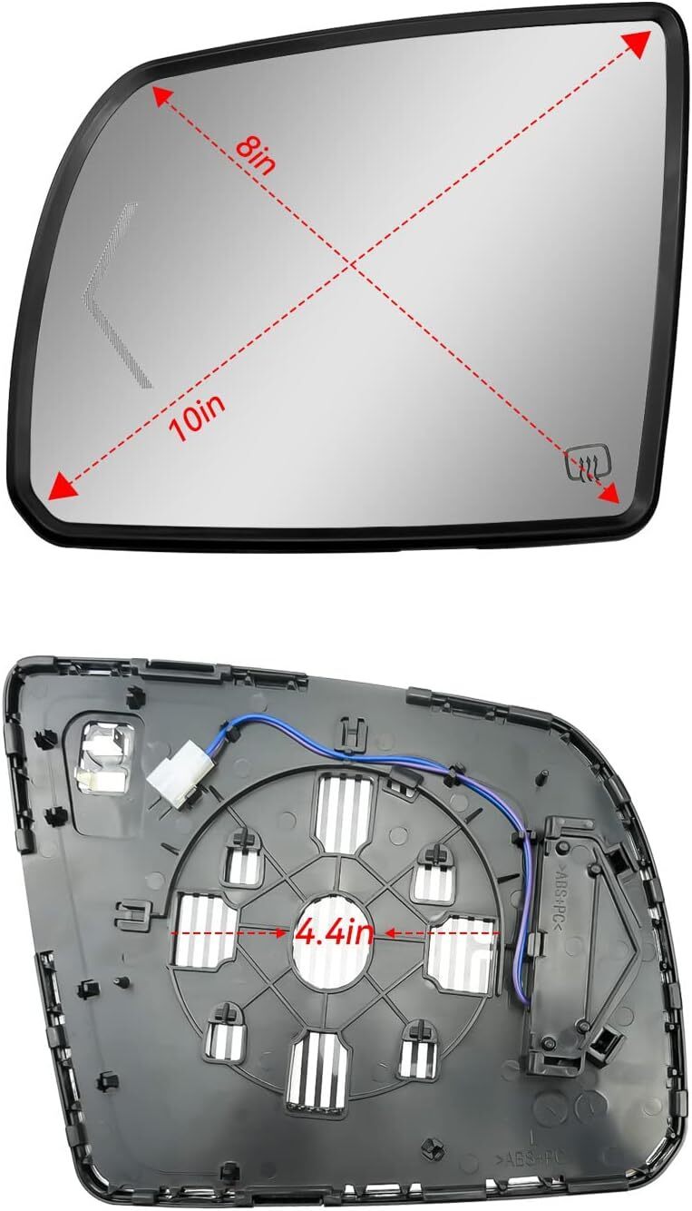 Fit Models: Driver side mirror glass fit for Toyota Sequoia 2008 2009 2010 2011 2012 2013 2014 2015 2016 2017, fit for Toyota Tundra 2007 2008 2009 2010 2011 2012 2013 2014 2015 2016 2017 2018 2019 2020 Replace Part Number: 87906-0C030, please kindly check the fitment and part number to ensure this will fit your model before ordering Heating function: The rear view mirror glass with heating function allows you to see the vehicle behind you more clearly in rainy and snowy weather, fog and frost weather, providing better visibility and improving your safety Upgrade Design: The thickness of glass lens frame has been upgraded and thickened to better protect the lens, but only the thickness of the frame has been changed, and the size of the rear bracket is the same as that of the original vehicle Durability and Visibility: This rear-view mirror is equipped with a turn signal lamp, which can clearly remind the vehicles behind, and facilitate and quickly change lanes. Professional design, can be replaced directly, ensuring accurate fit, without any installation modification