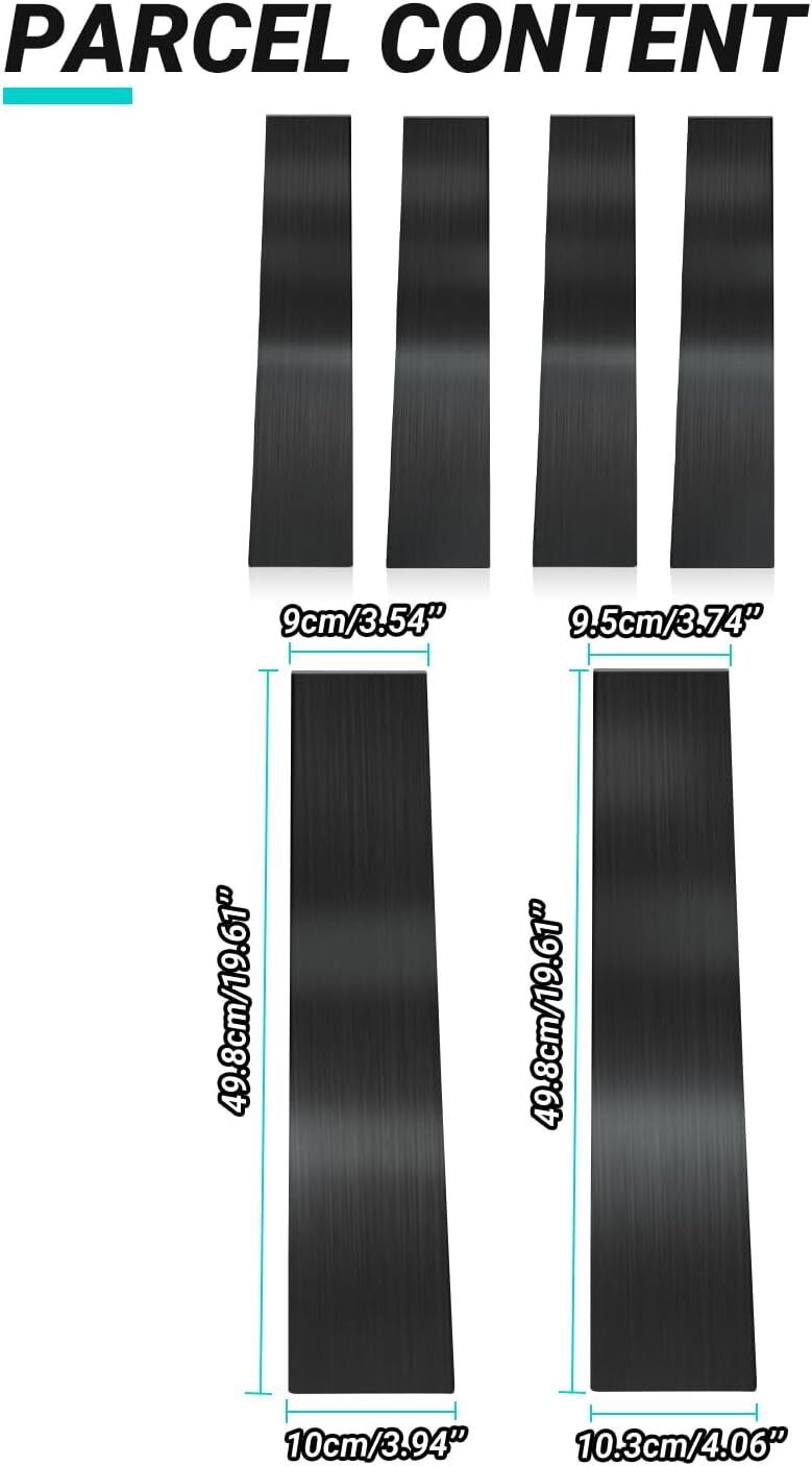 ?Perfect Fit - - Compatible with Ford F-150/ Lincoln Mark LT 2004 2005 2006 2007 2008 2009 2010 2011 2012 2013 2014, ensuring 4pcs of stainless steel chrome window pillar post trims for a seamless appearance, meeting precise measurements and specifications. ?Decorative Upgrade - - Glossy black pillar posts in 304 stainless steel enhance your vehicle's visual appeal, covering scratches and upgrading its grade, catching attention with a unique design. ?Premium Material - - Crafted from 304 stainless steel with 26-gauge thickness, the window trim undergoes a strict polishing process for a smooth mirror polish surface. It's safe to use with no sharp edges, ensuring durability under extreme weather conditions. ?Effortless Installation - - Featuring 3M self-adhesive tape, these glossy black pillar posts offer easy installation, removal with no residue, and an OEM perfect fitment. A protective film ensures a pristine appearance upon installation. ?Responsive Support - - Contact us anytime for responsive customer support within 24 hours. Effective communication is key to resolving any post-purchase queries or concerns.